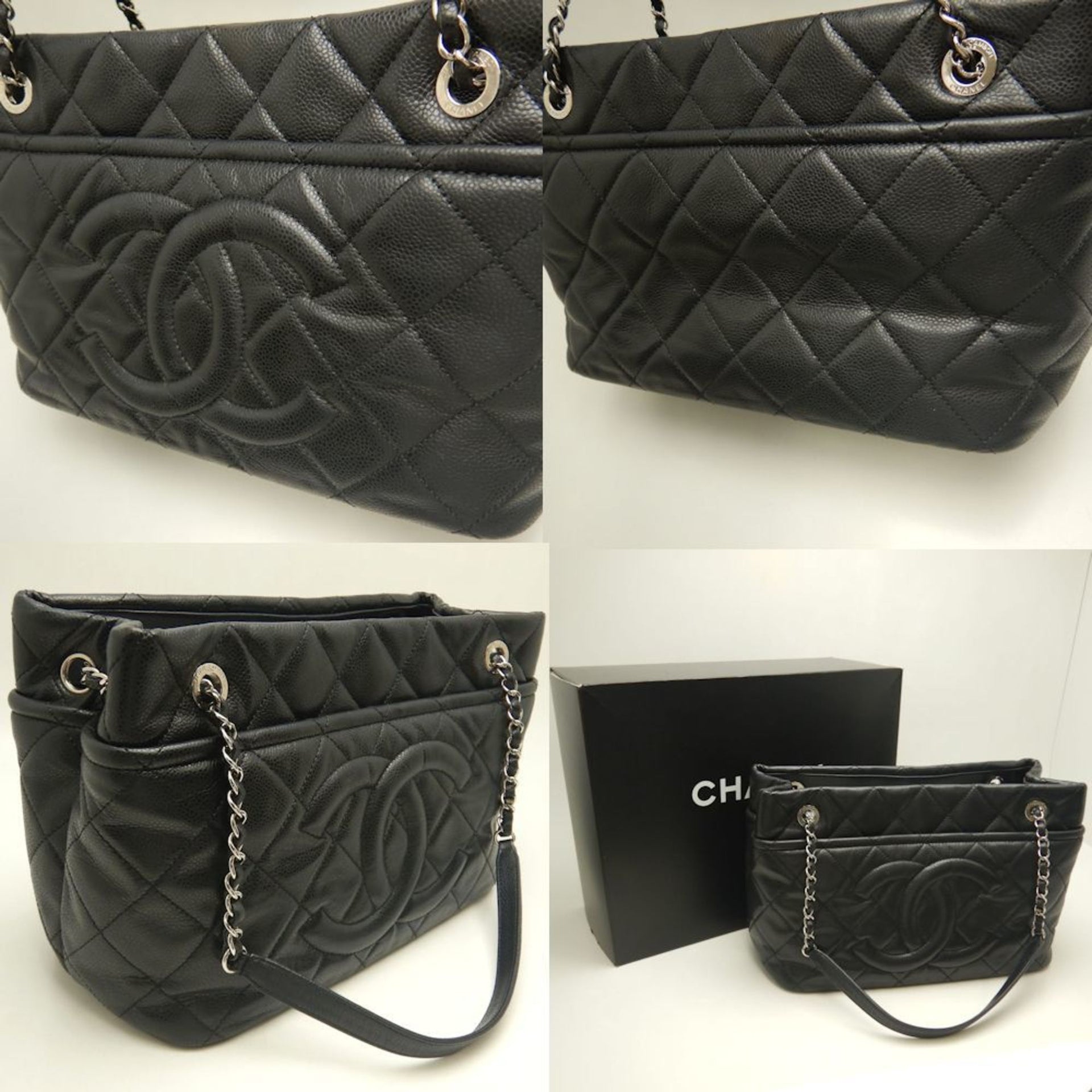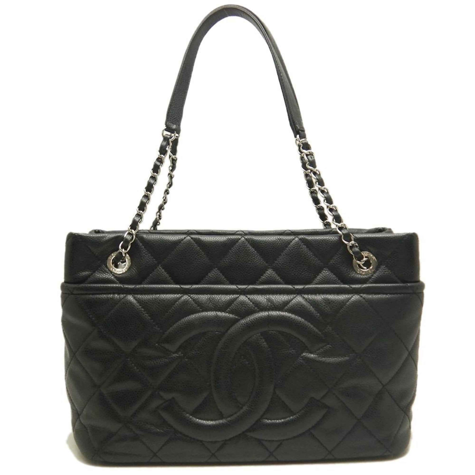 CHANEL Chain Tote Bag Matelasse Caviar Leather Black Women\'s 253427