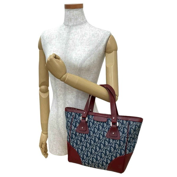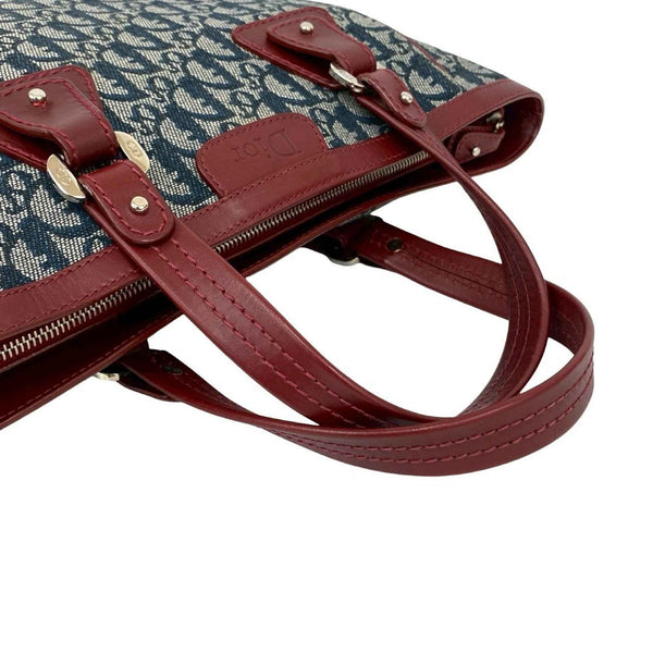 Christian Dior Trotter Pattern Canvas and Leather Handbag/Tote Bag, Navy Bordeaux, 94775