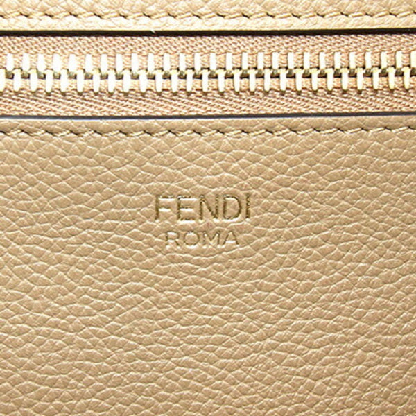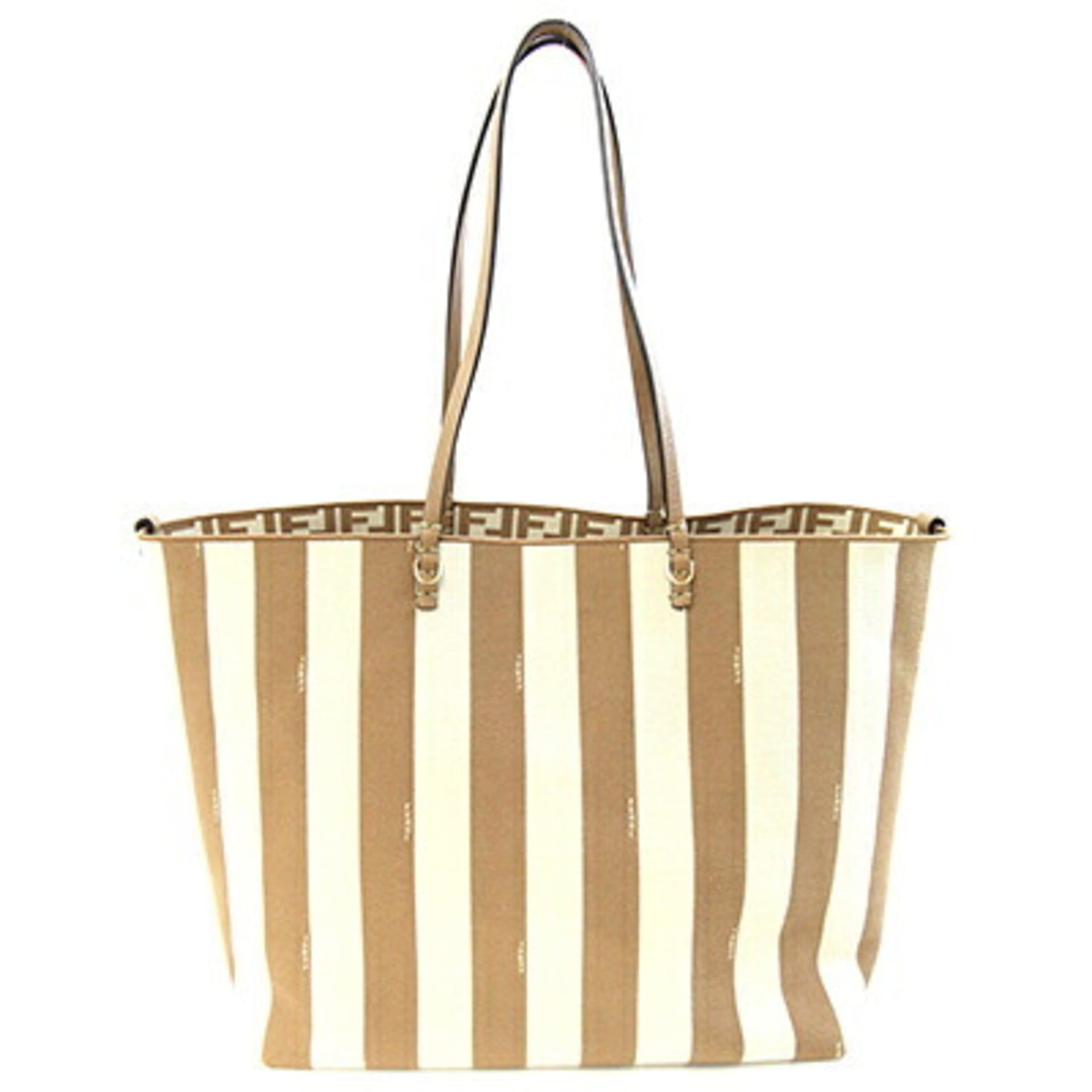 Fendi Roll Large Tote Bag 8BH425 Beige Fabric Leather Reversible Shoulder FF Zucca Pecan Stripe Women\'s FENDI