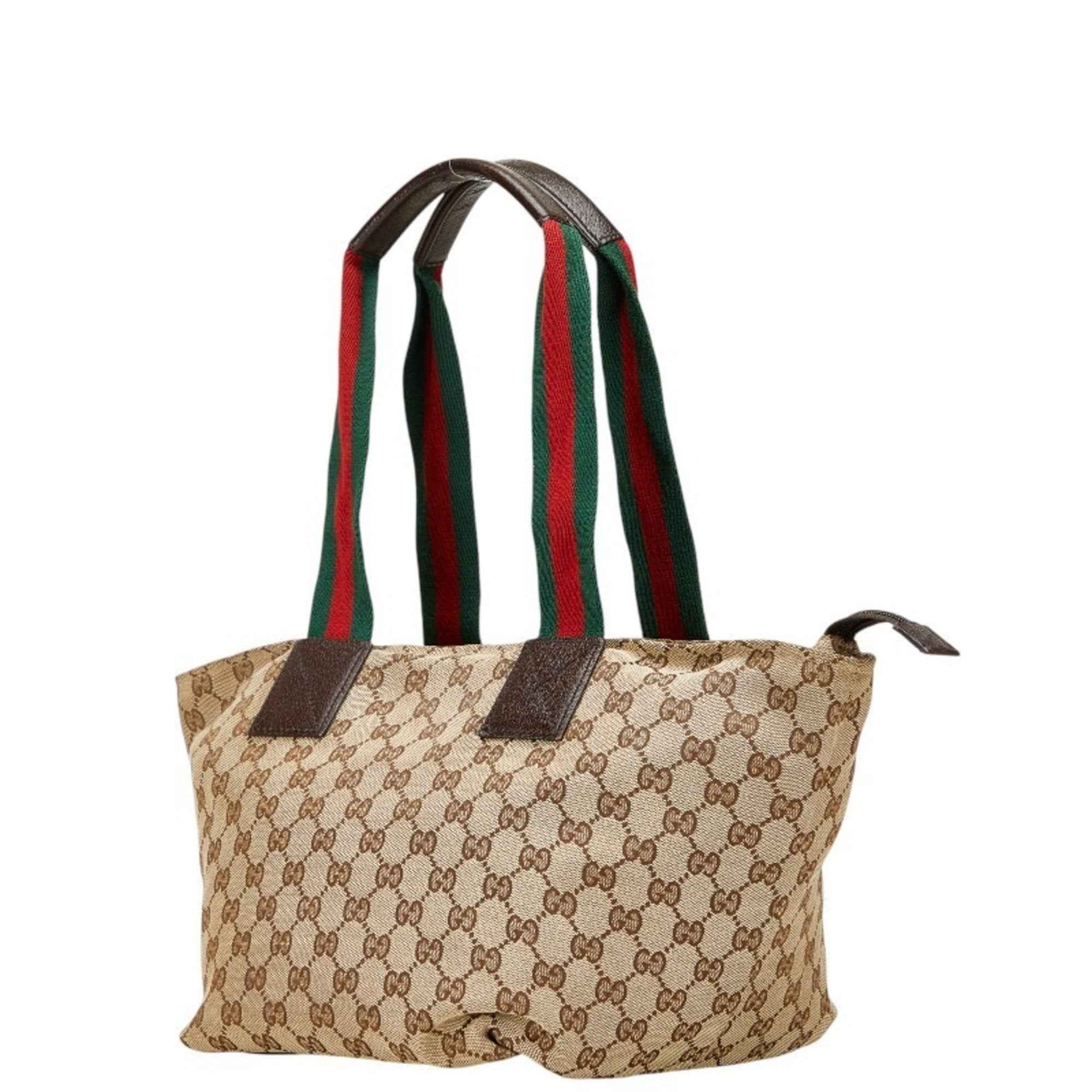 Gucci GG Canvas Tote Bag 131230 Beige Brown Leather Women\'s GUCCI