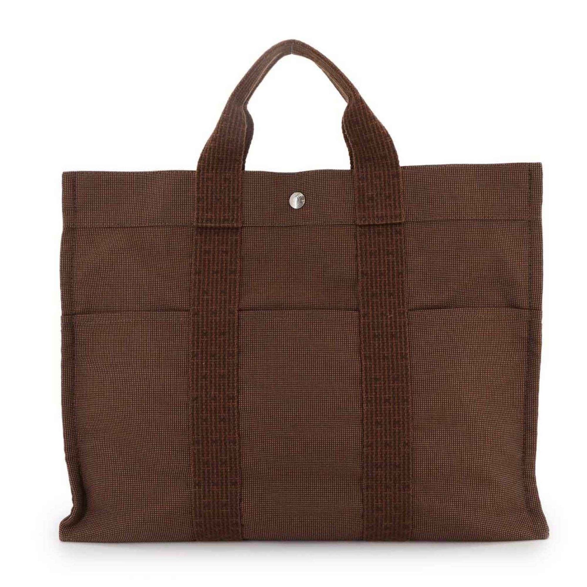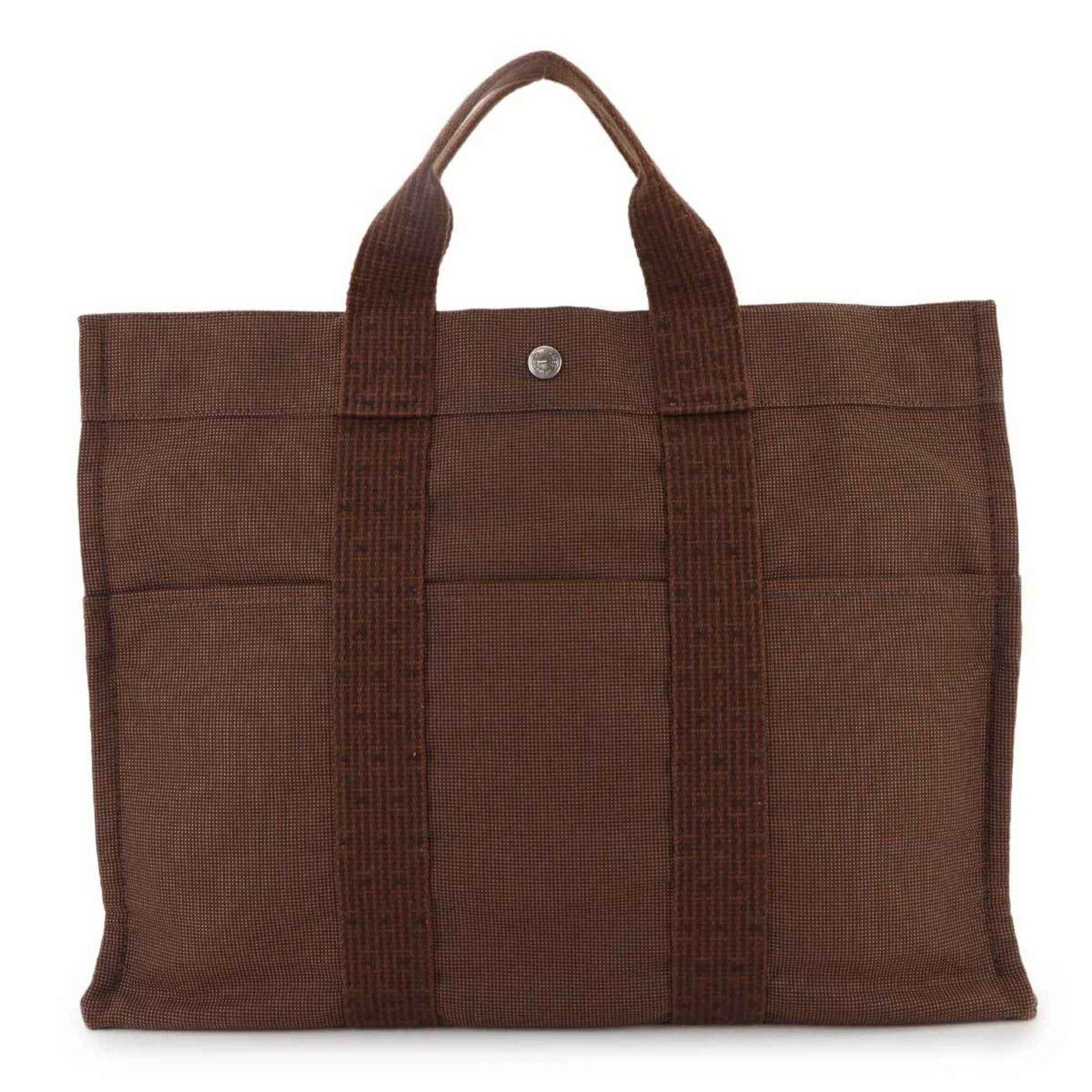 Hermes Hermès Herline MM Tote Bag in Brown Canvas with Silver Hardware