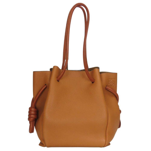 LOEWE Flamenco Knot Leather Tote Bag in Camel and Brown with Anagram Design for Women