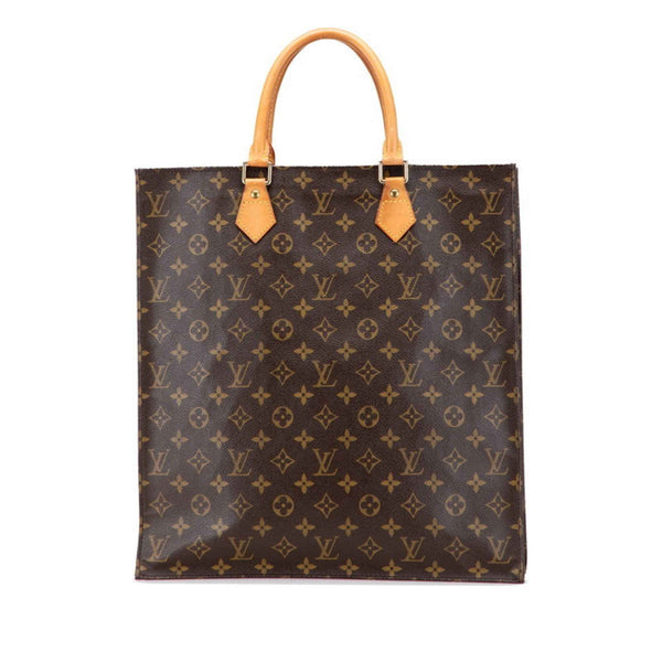 Louis Vuitton Monogram Sac Plat Handbag Tote Bag M51140 Brown Leather Women\'s LOUIS VUITTON