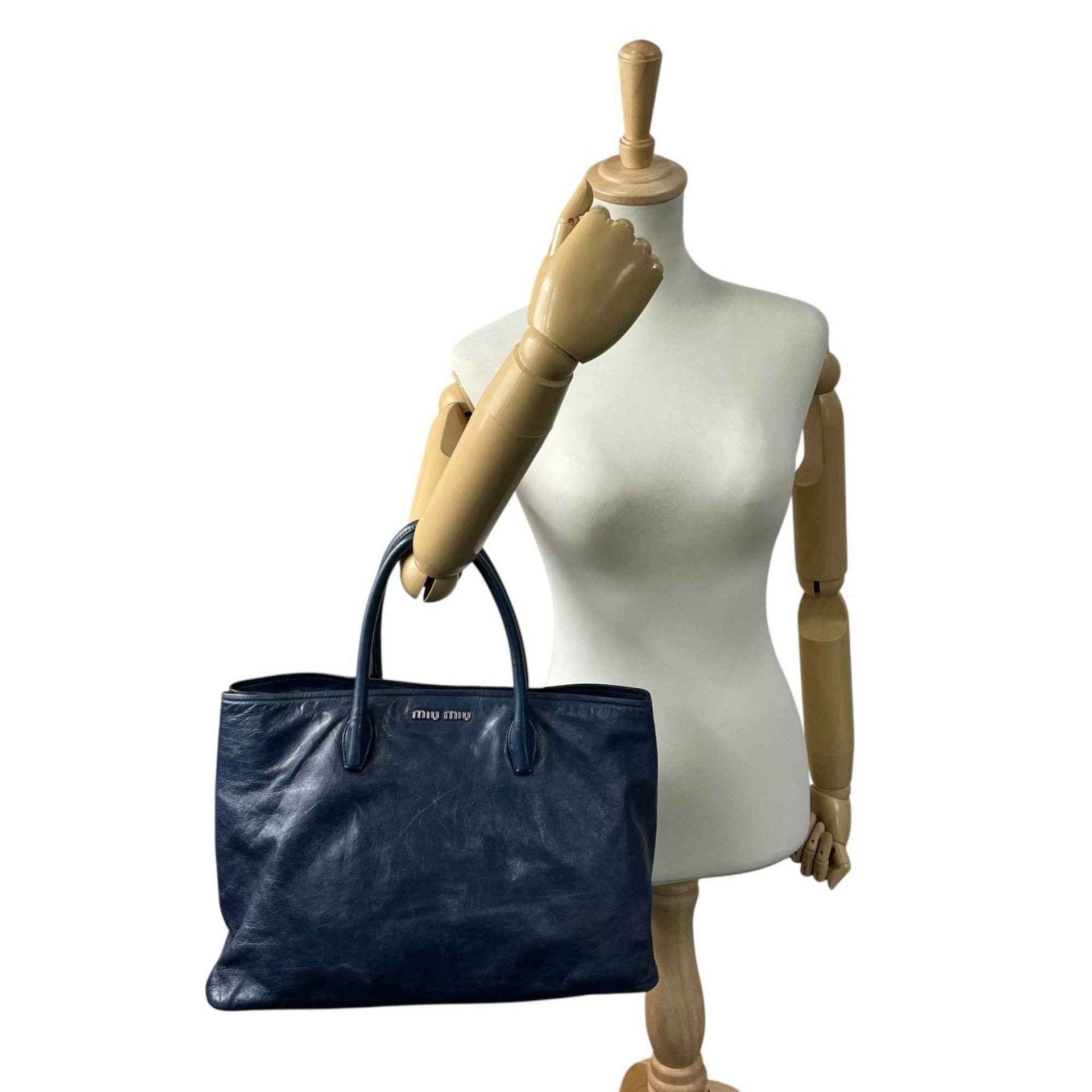 Miu Miu Miu tote bag, shoulder navy blue, 2-way leather, can be carried by hand or across the body, silver hardware, logo, women\'s, K10 archive 002 Y2K