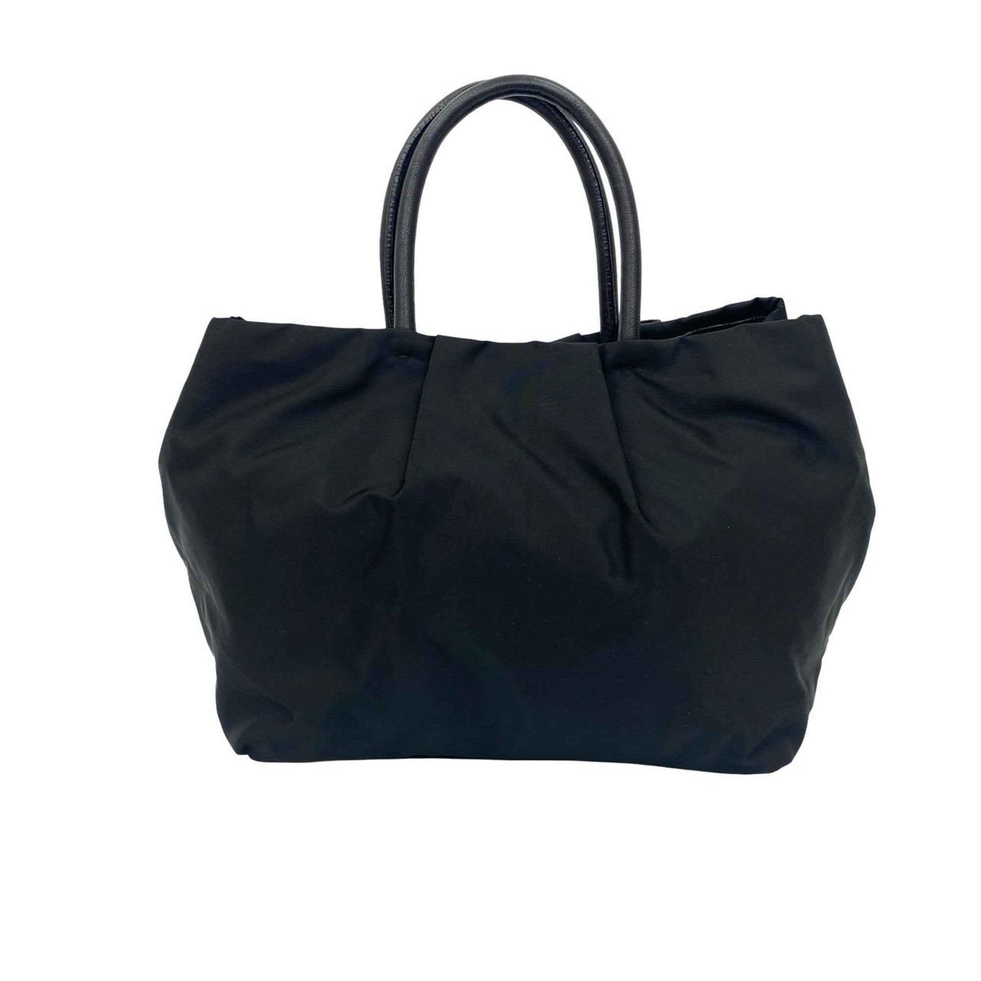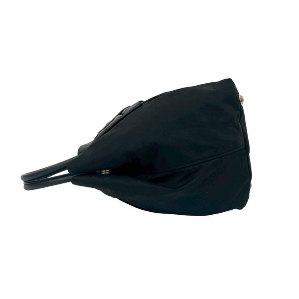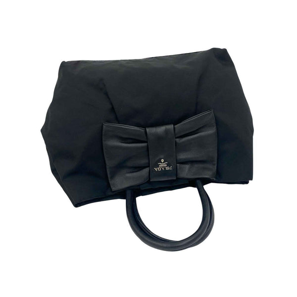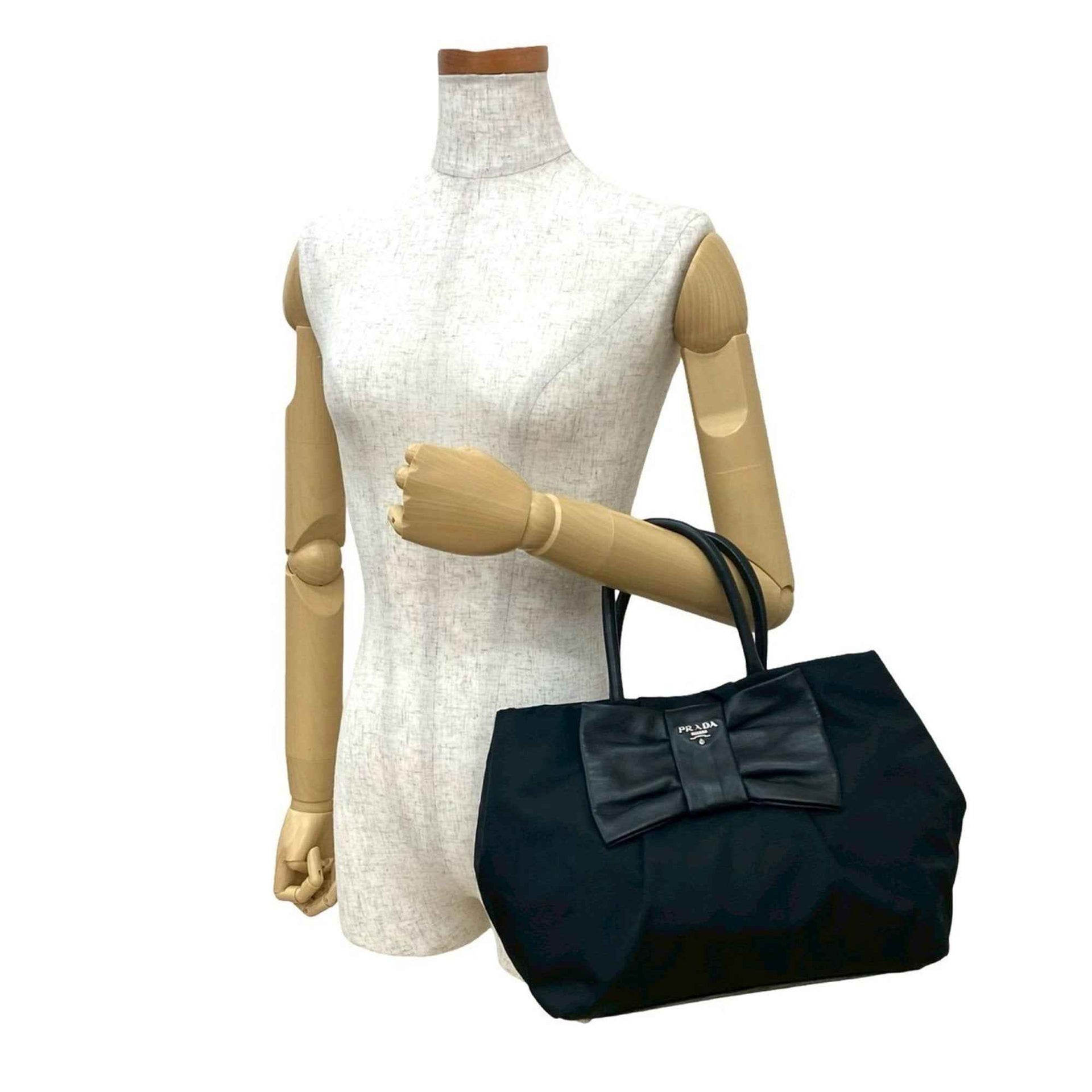 PRADA Prada logo hardware nylon and leather ribbon motif handbag tote bag in black 73299
