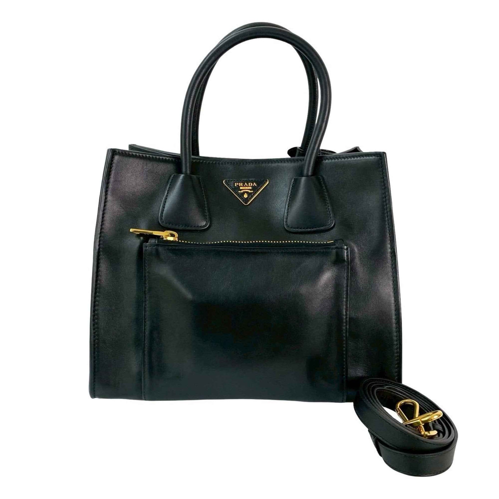 PRADA Prada Triangle Logo Hardware Leather 2-Way Handbag Mini Tote Bag Shoulder Black 75848