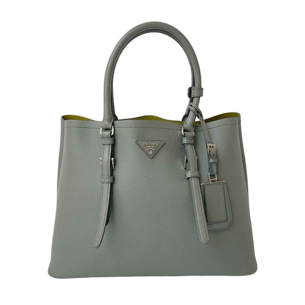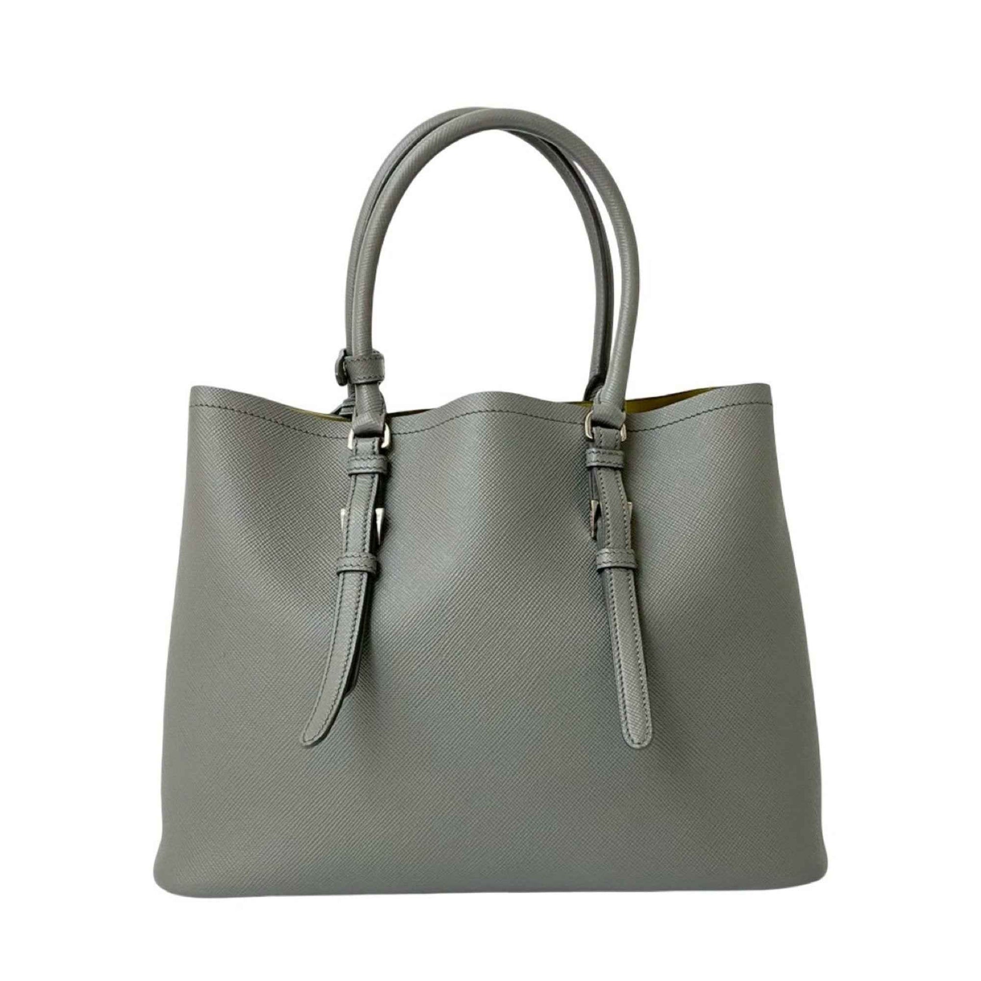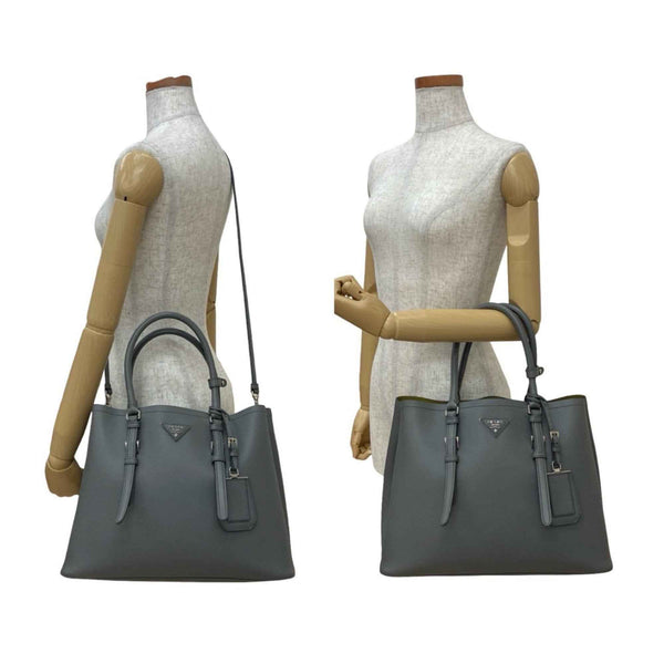 PRADA Prada Triangle Logo Hardware Saffiano Leather 2-Way Handbag Mini Tote Bag Shoulder Gray b79-5