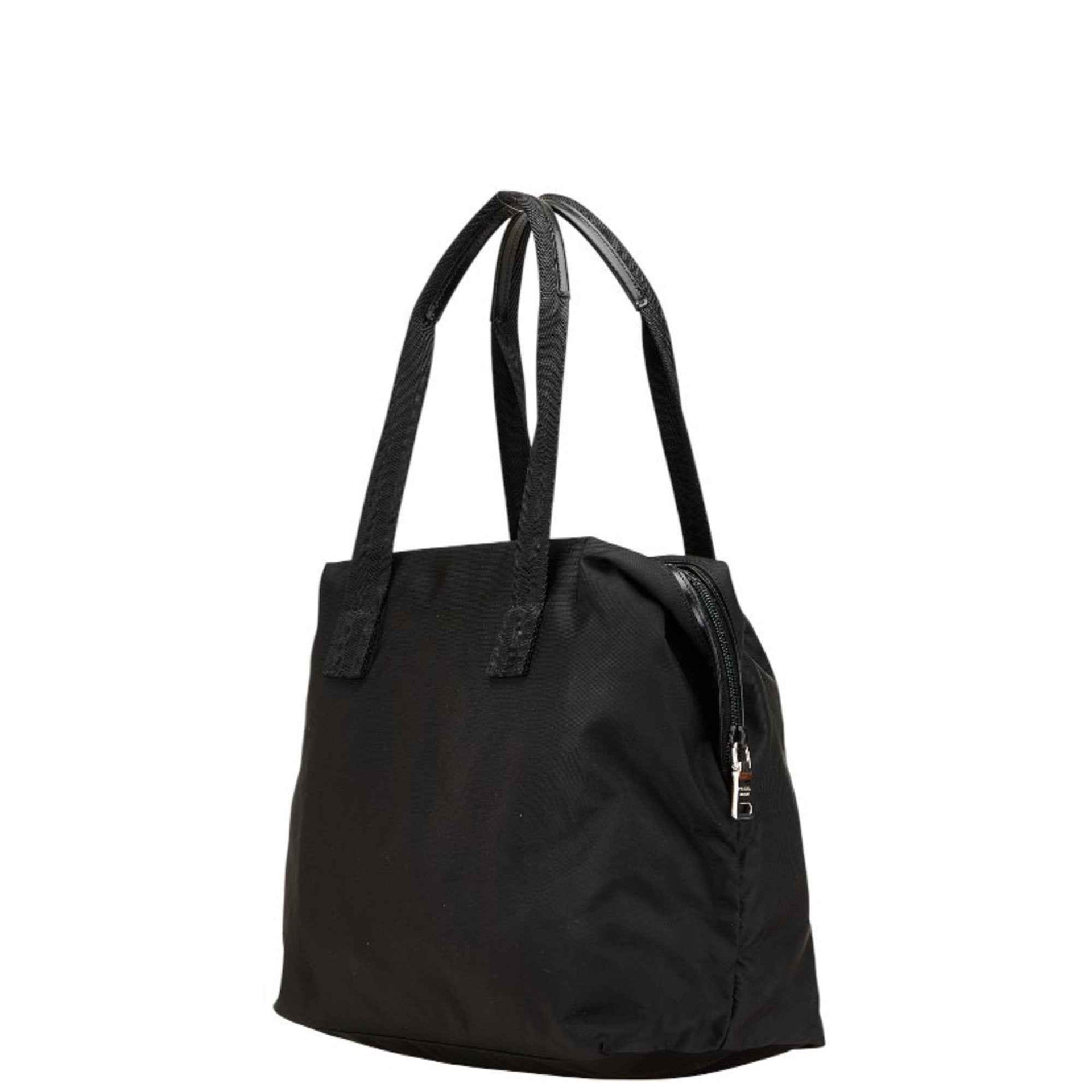 Prada Triangle Logo Plate Handbag Tote Bag VR4377 Black Nylon Leather Women\'s PRADA