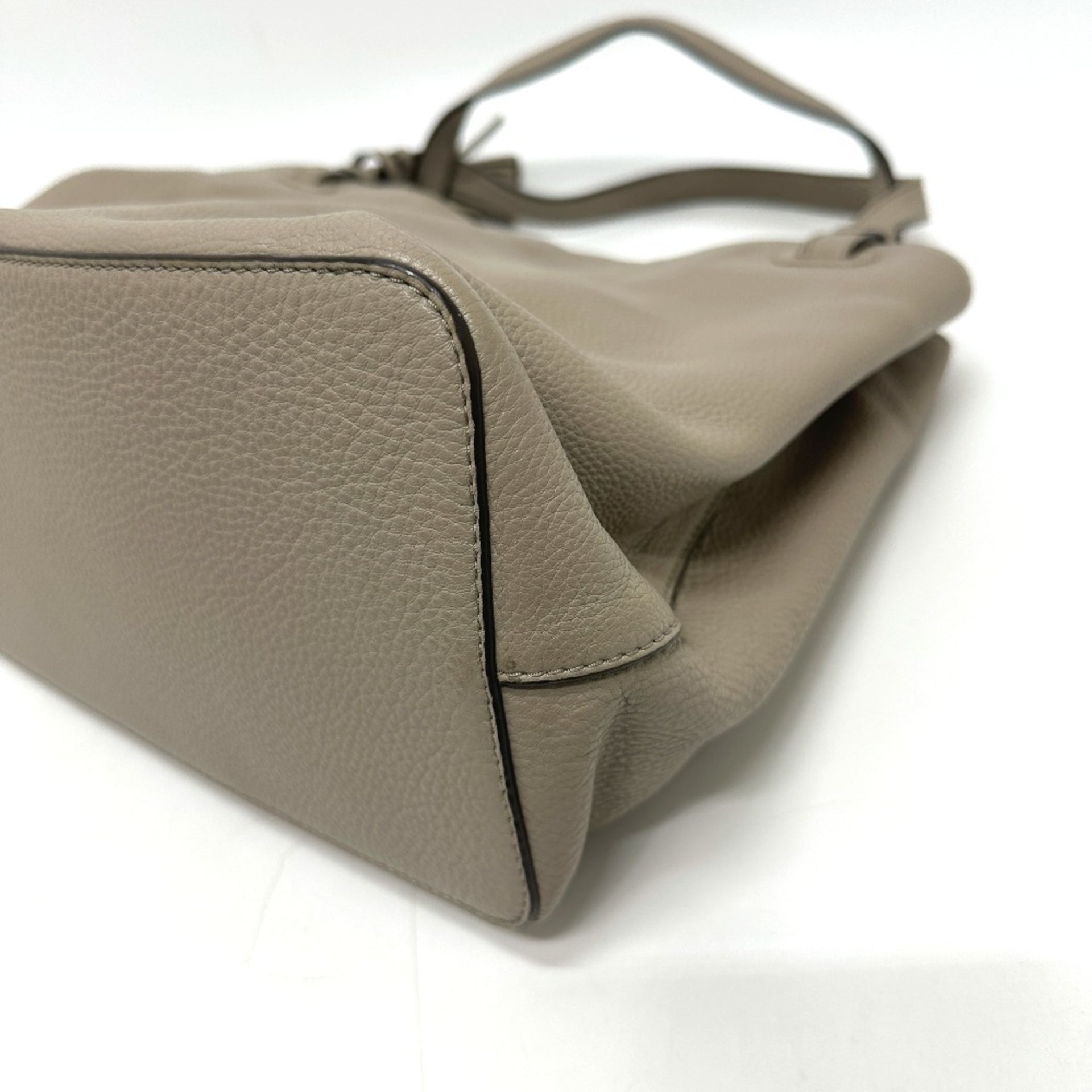 Tory Burch Logo Tote Bag Handbag Shoulder Leather Women\'s Beige