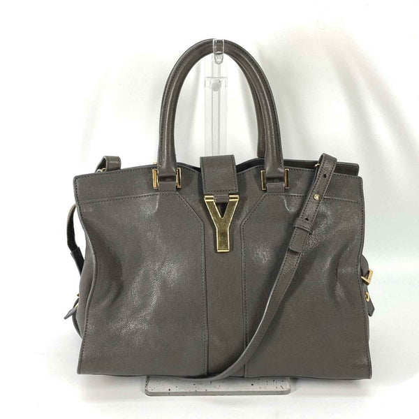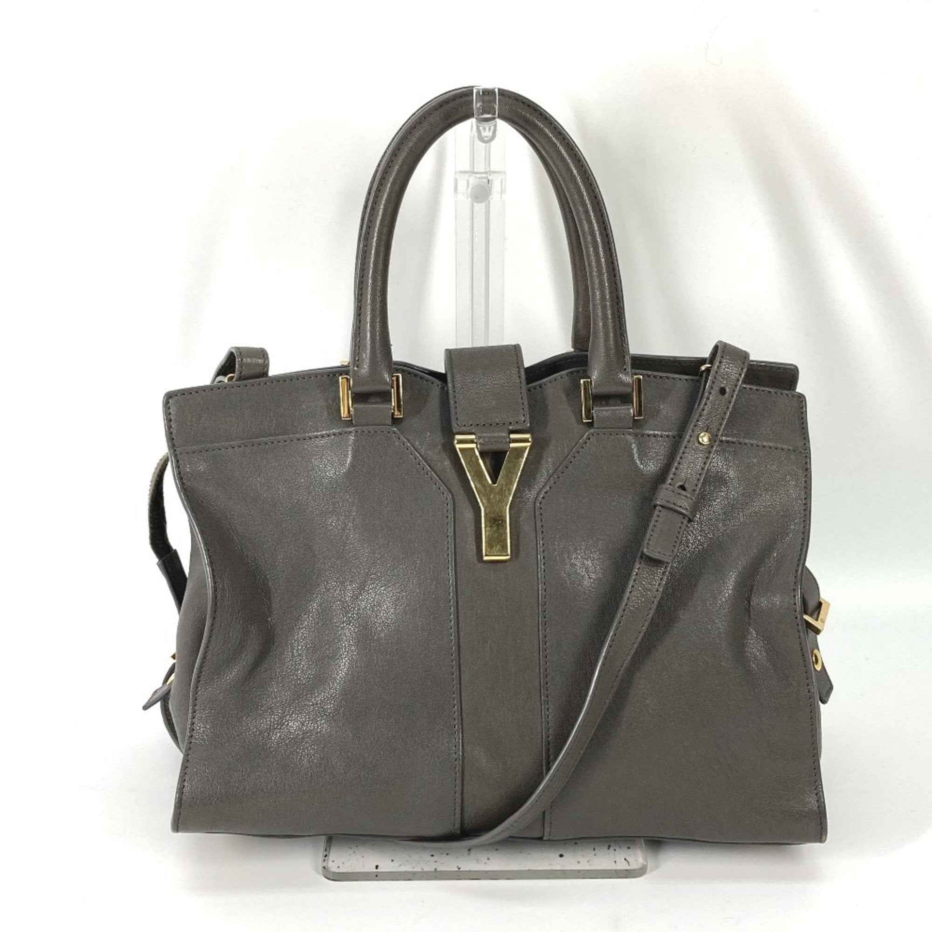 Yves Saint Laurent 400666 Y Logo Cabas Chic Tote Bag, 2-Way Shoulder Bag/Handbag, Women\'s, Gray Leather