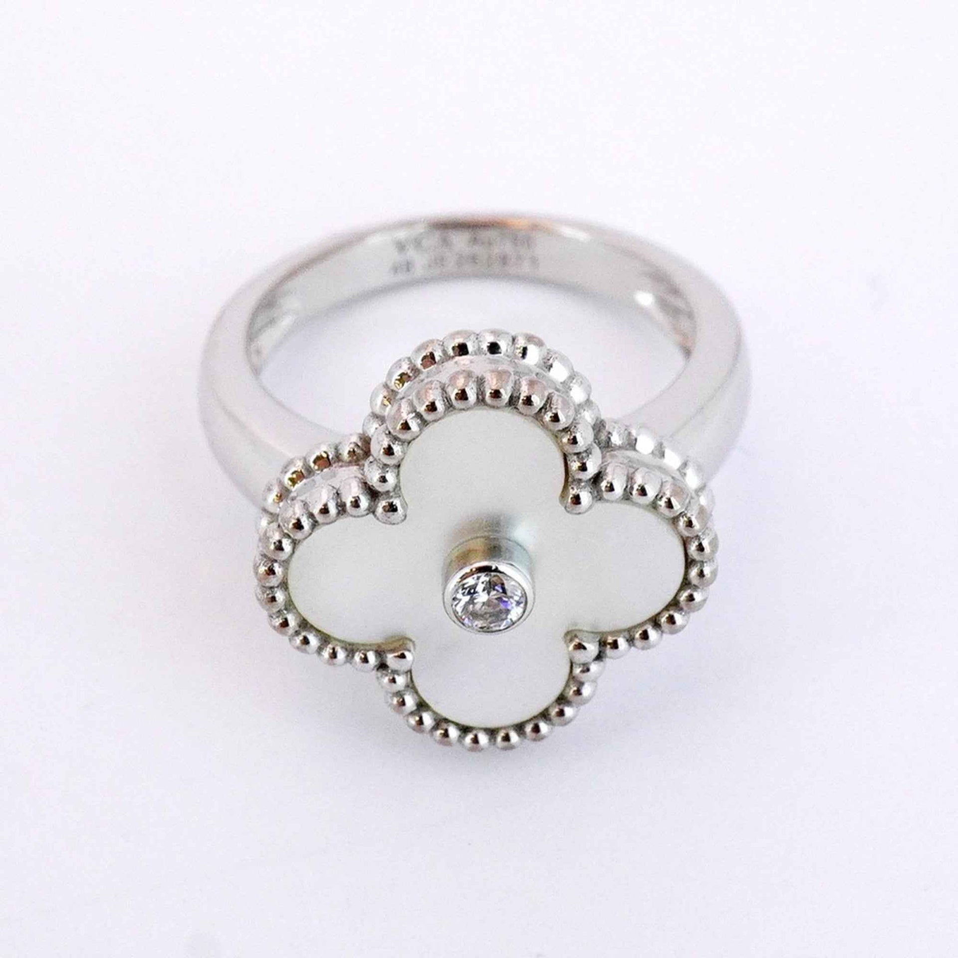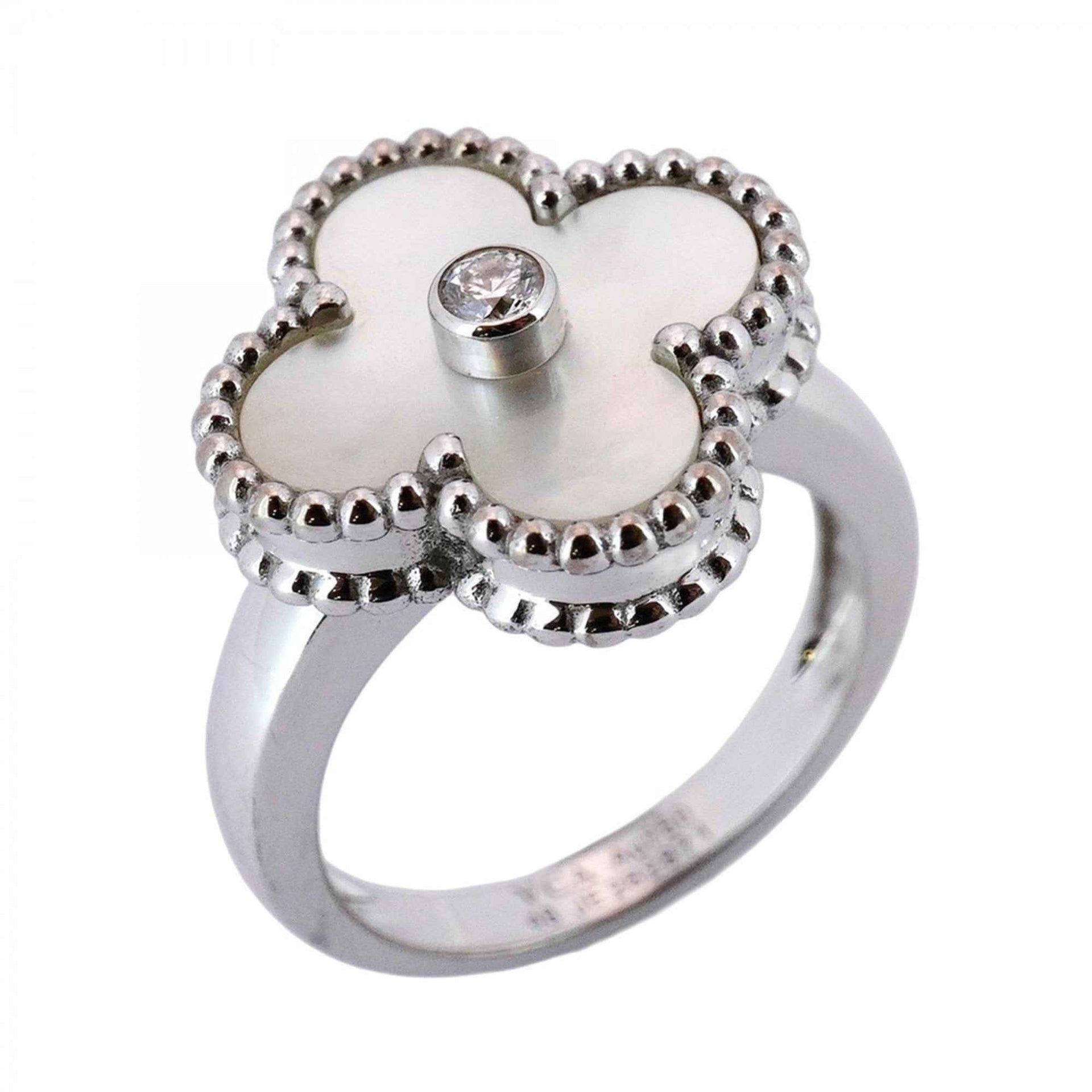 Van Cleef & Arpels Alhambra Ring, 1PD, 18K White Gold, Diamond, Mother-of-Pearl, #48, Women\'s