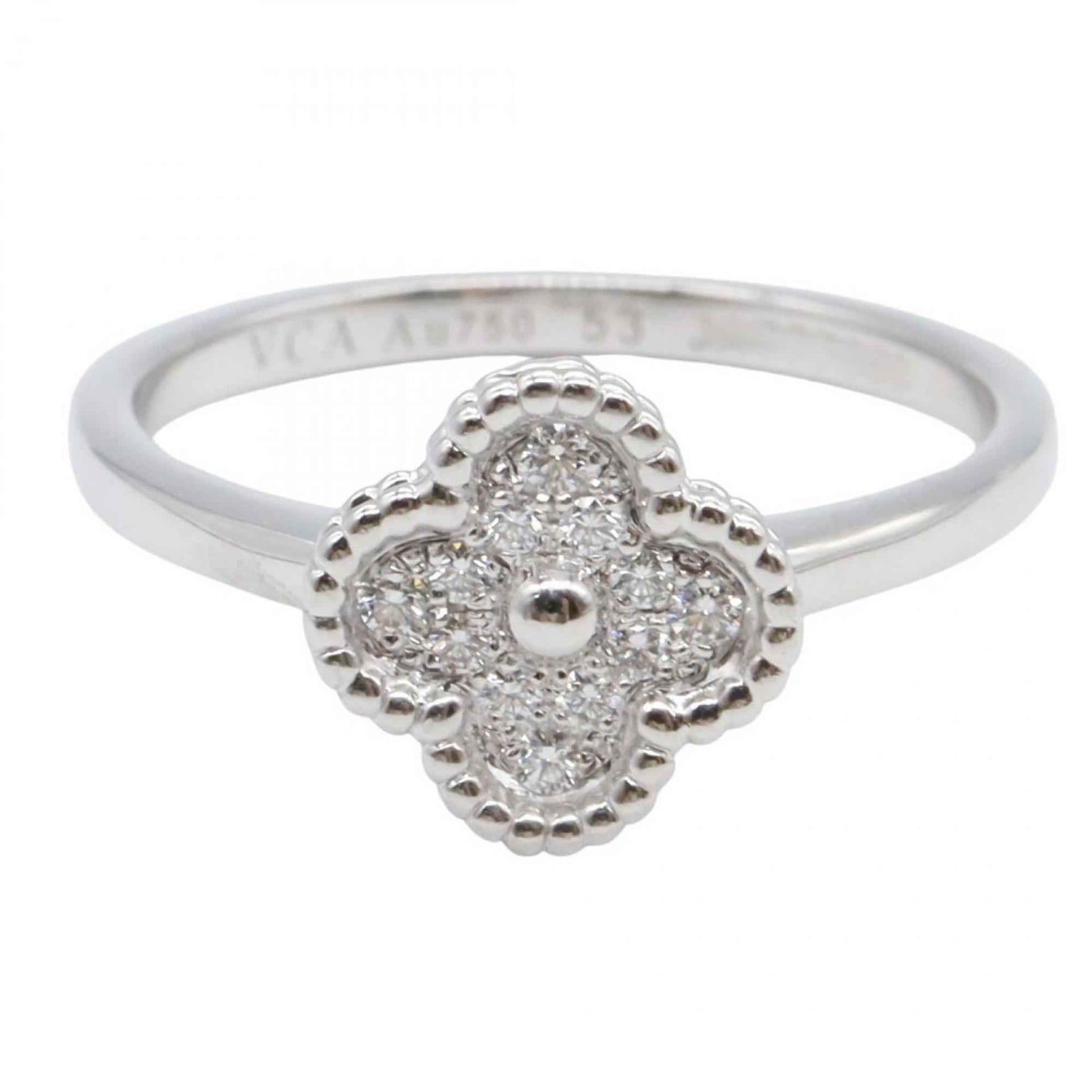 Van Cleef & Arpels Sweet Alhambra Diamond Ring in 18K White Gold (VCARO85800) - Women\'s, Silver or Clear.