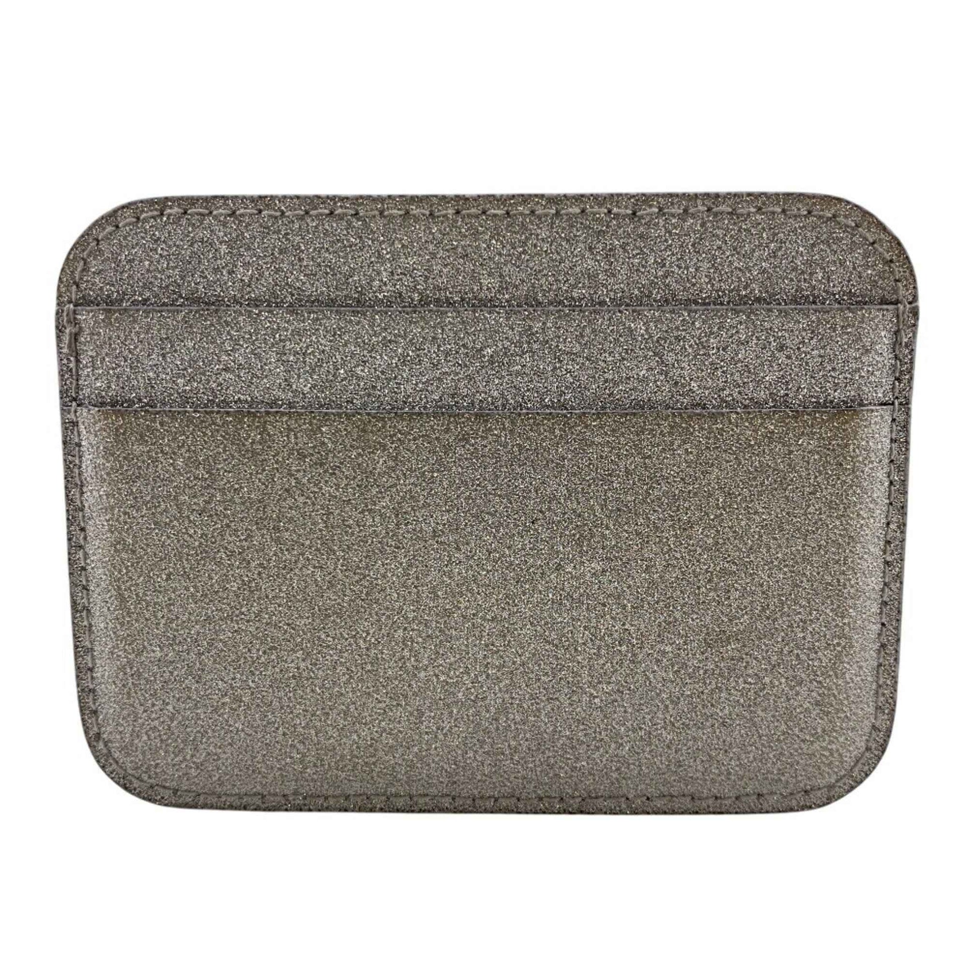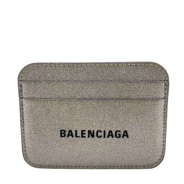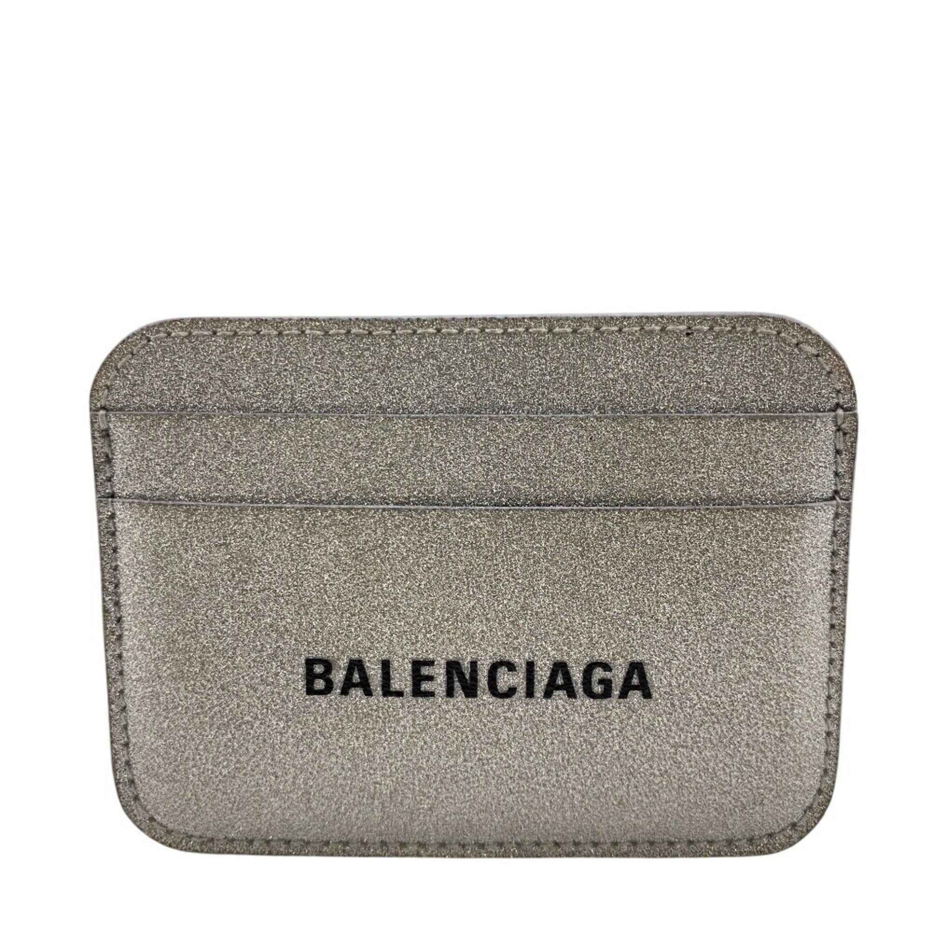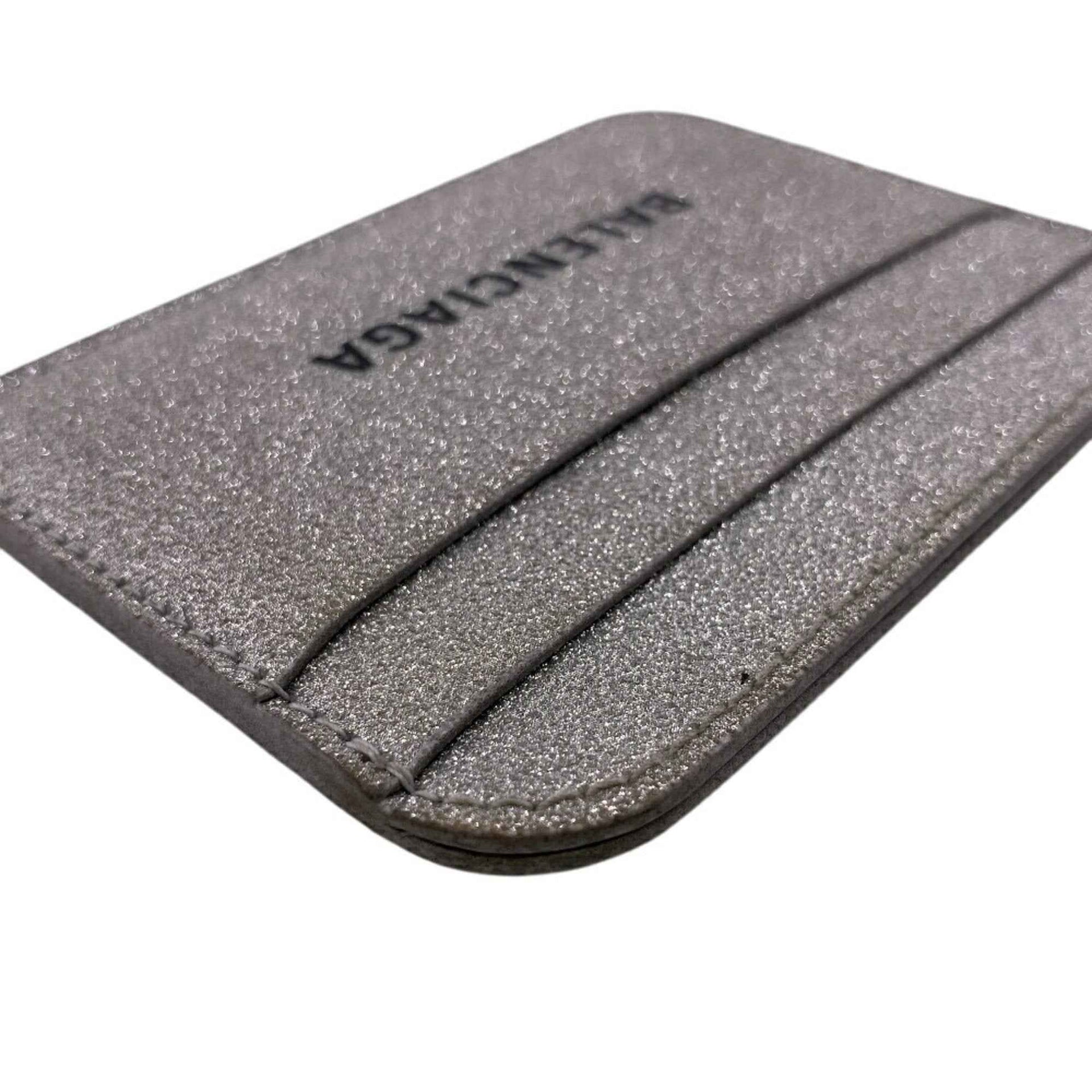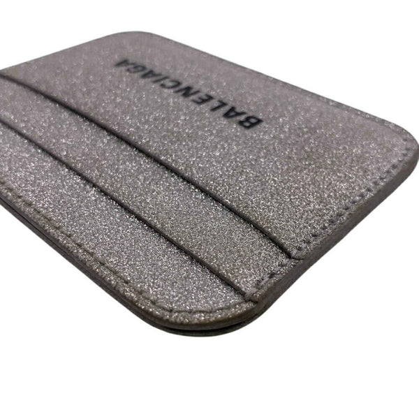 BALENCIAGA 593812 Leather x Lamé Card Case Wallet, Silver