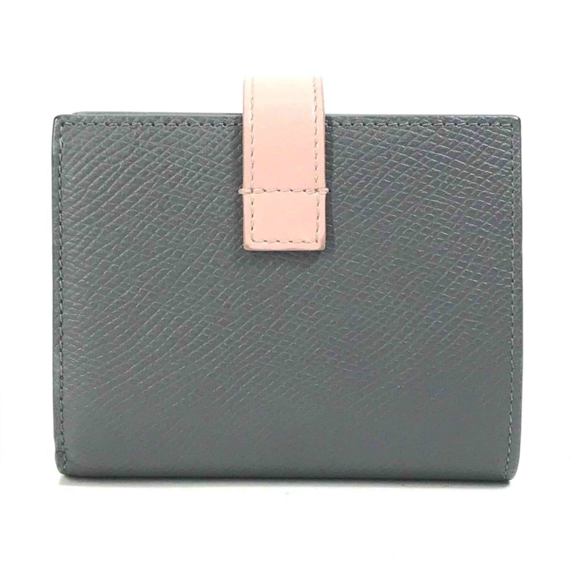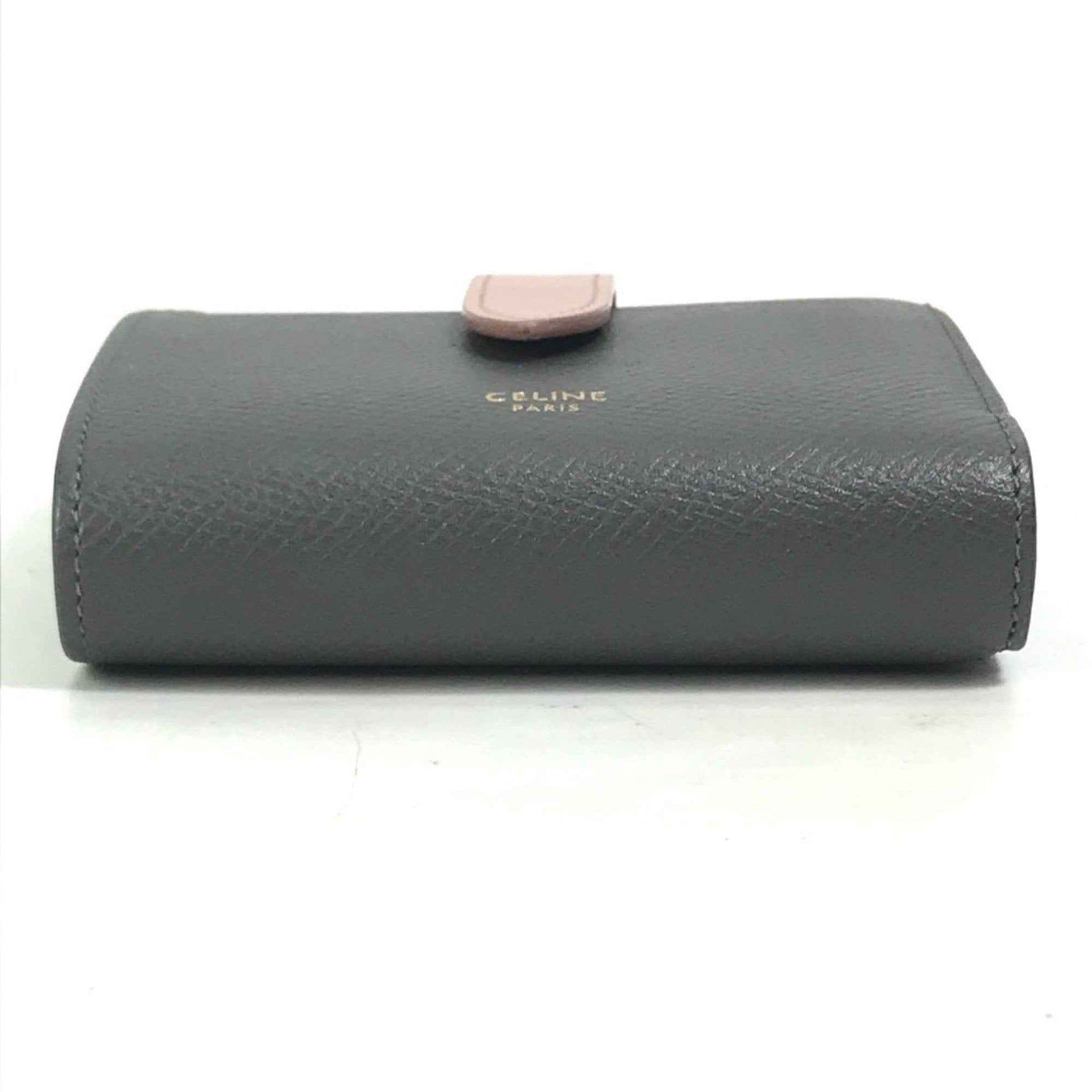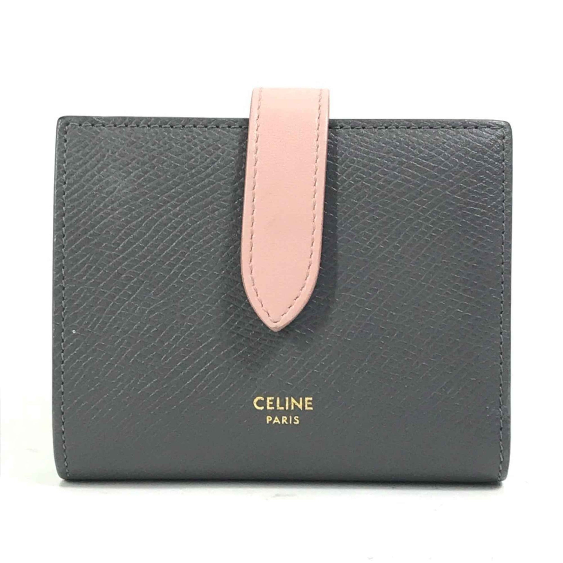 CELINE 10H263BRU.10GV Two-Tone Small Strap Wallet, Compact Tri-Fold Leather Women\'s, Gray and Pink