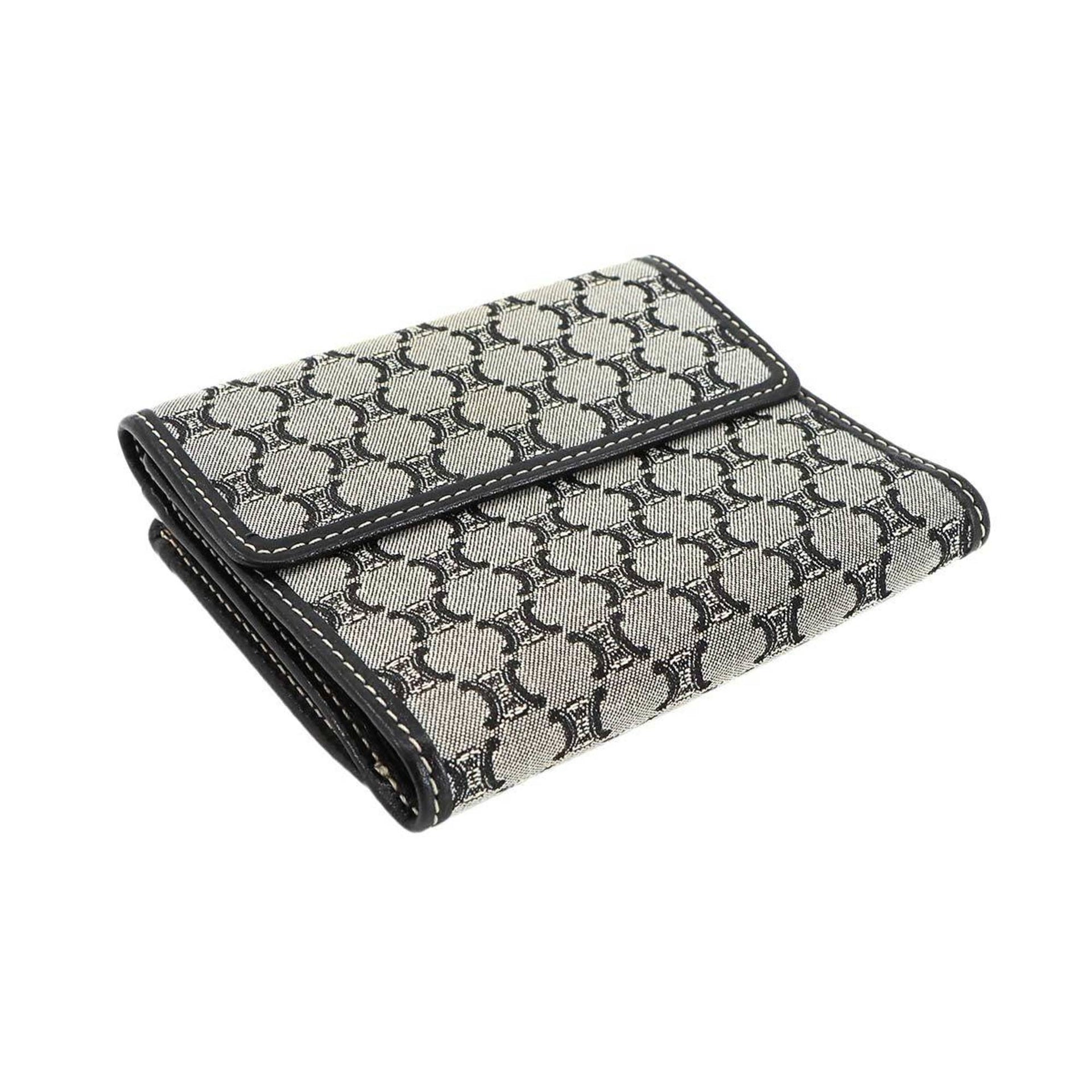 Celine Macadam Tri-fold Wallet in Canvas and Leather with Gray, Black, Silver Hardware