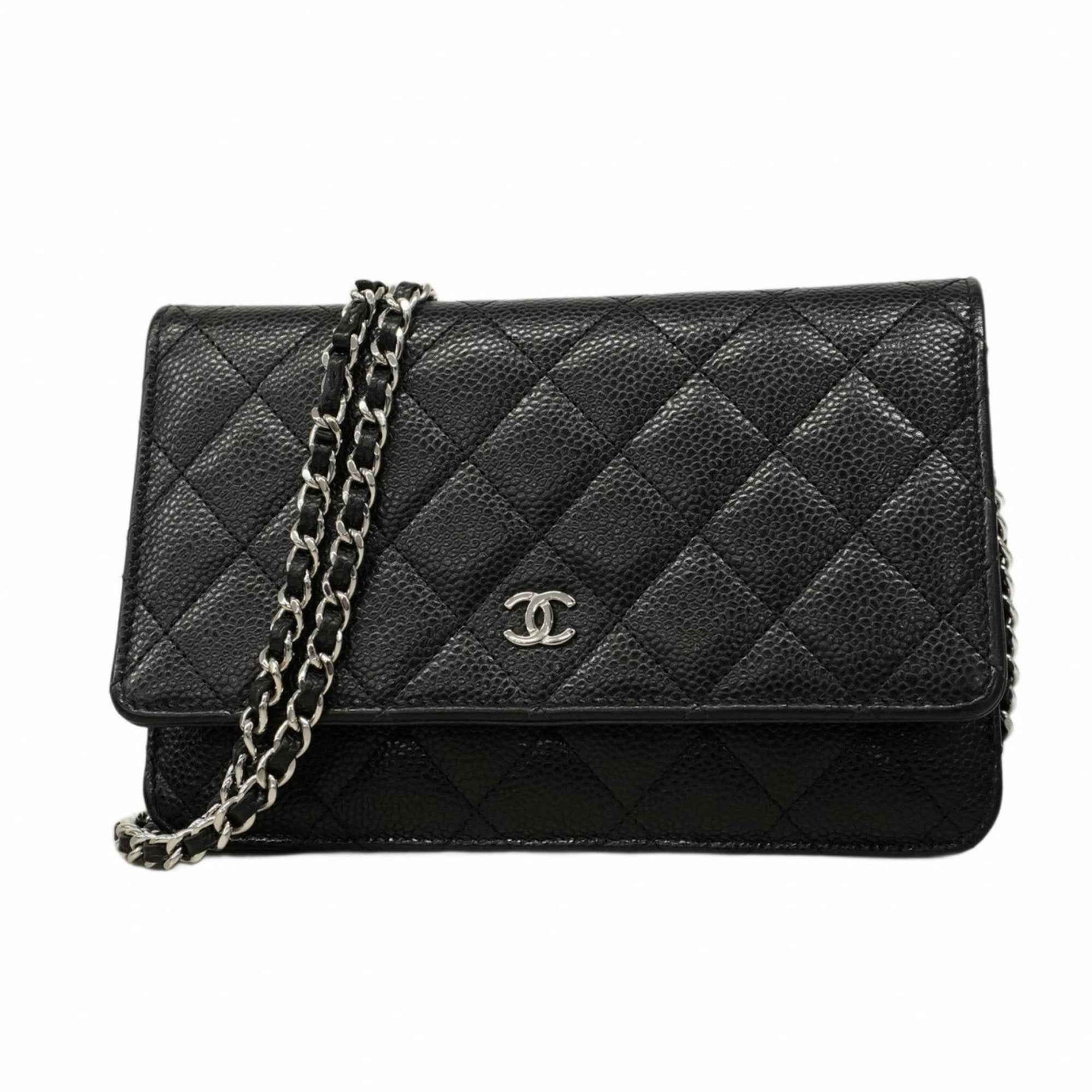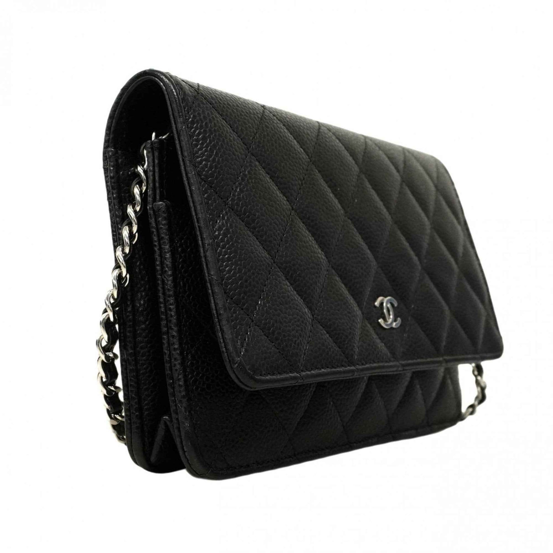 Chanel Matelasse Shoulder Wallet with Chain Bag in Caviar Skin, Black, Women\'s