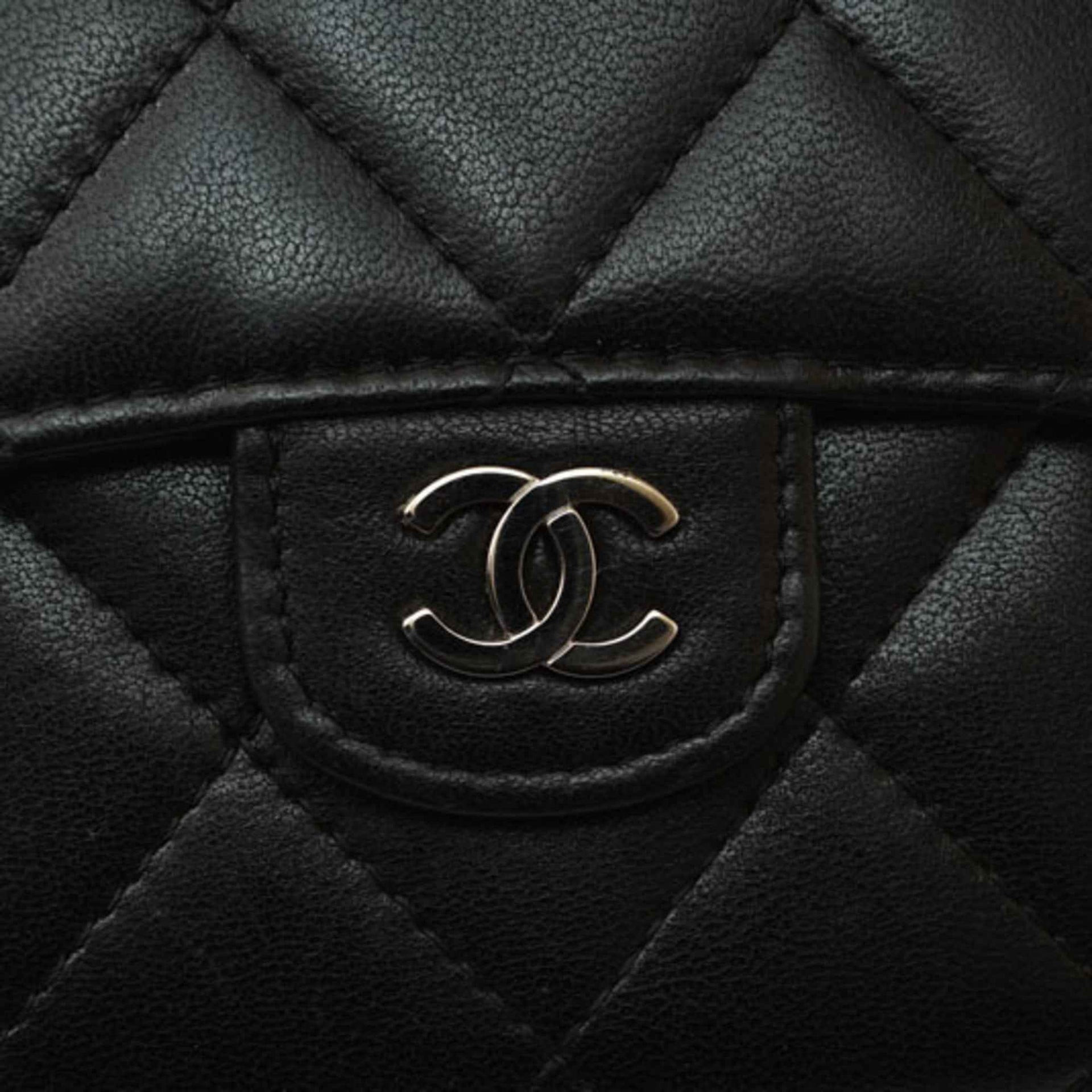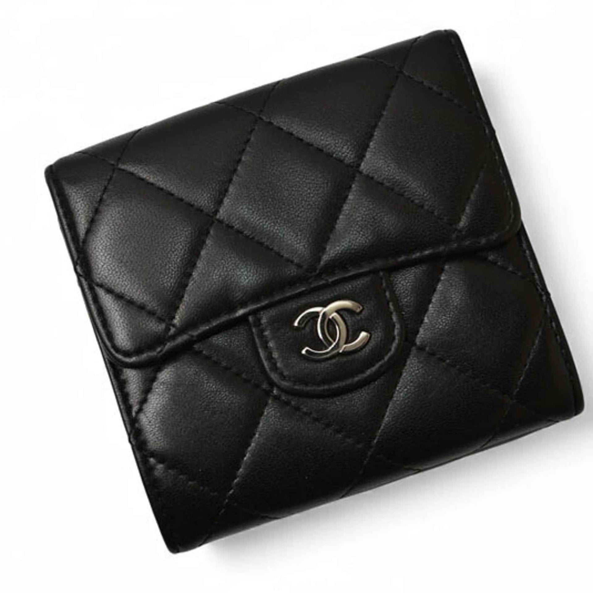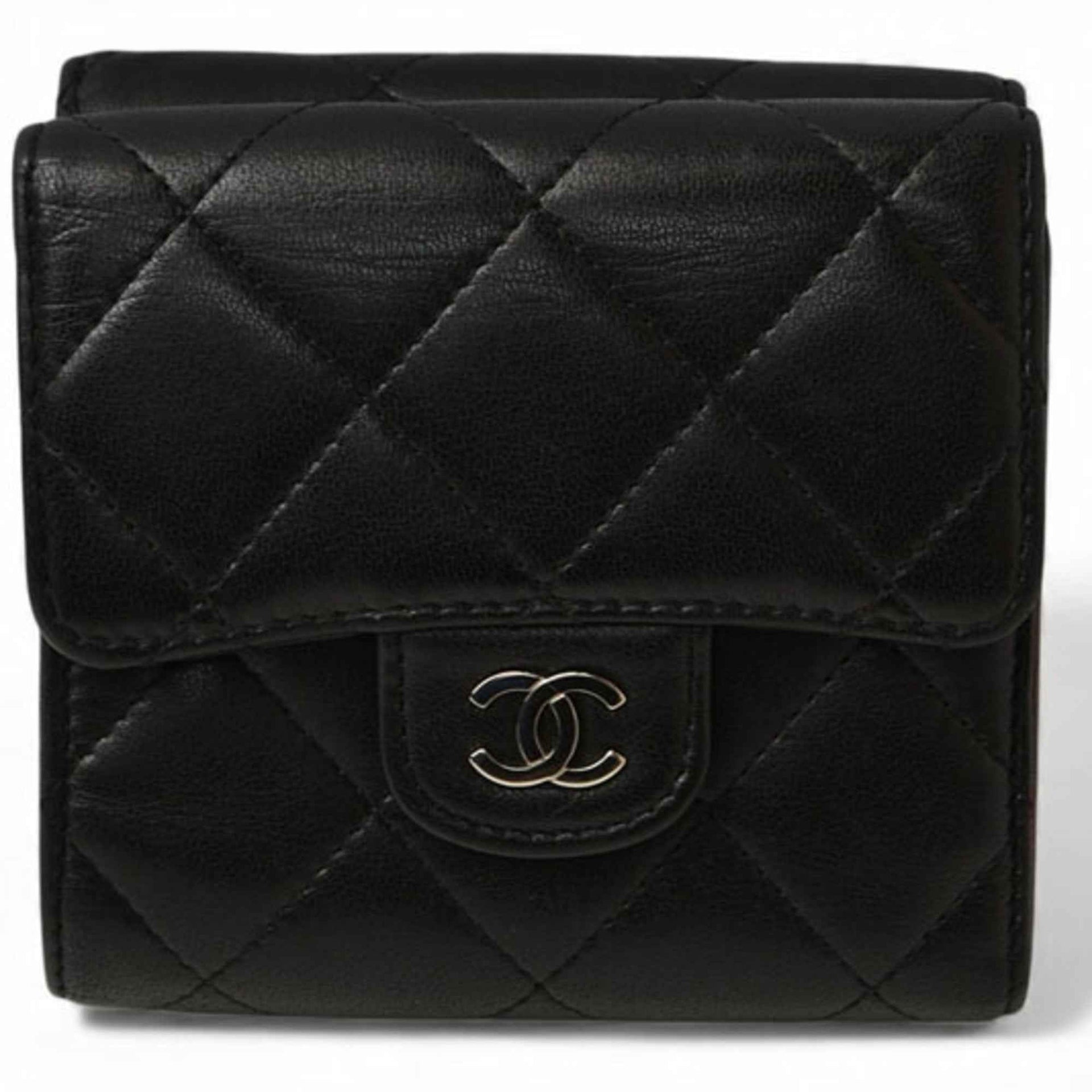 CHANEL Tri-fold Wallet Matelasse Lambskin Black
