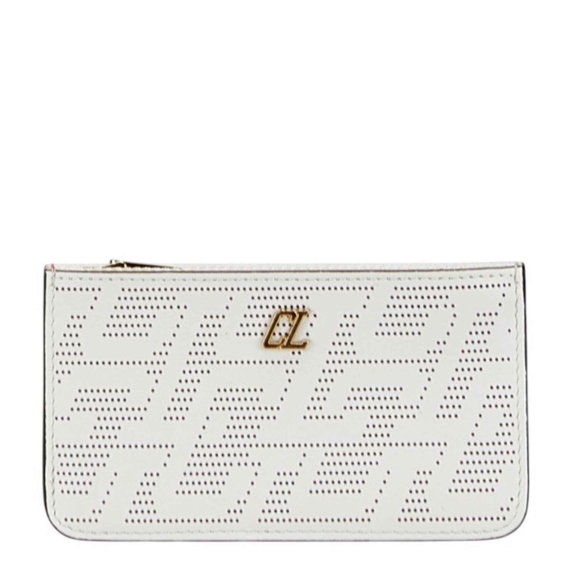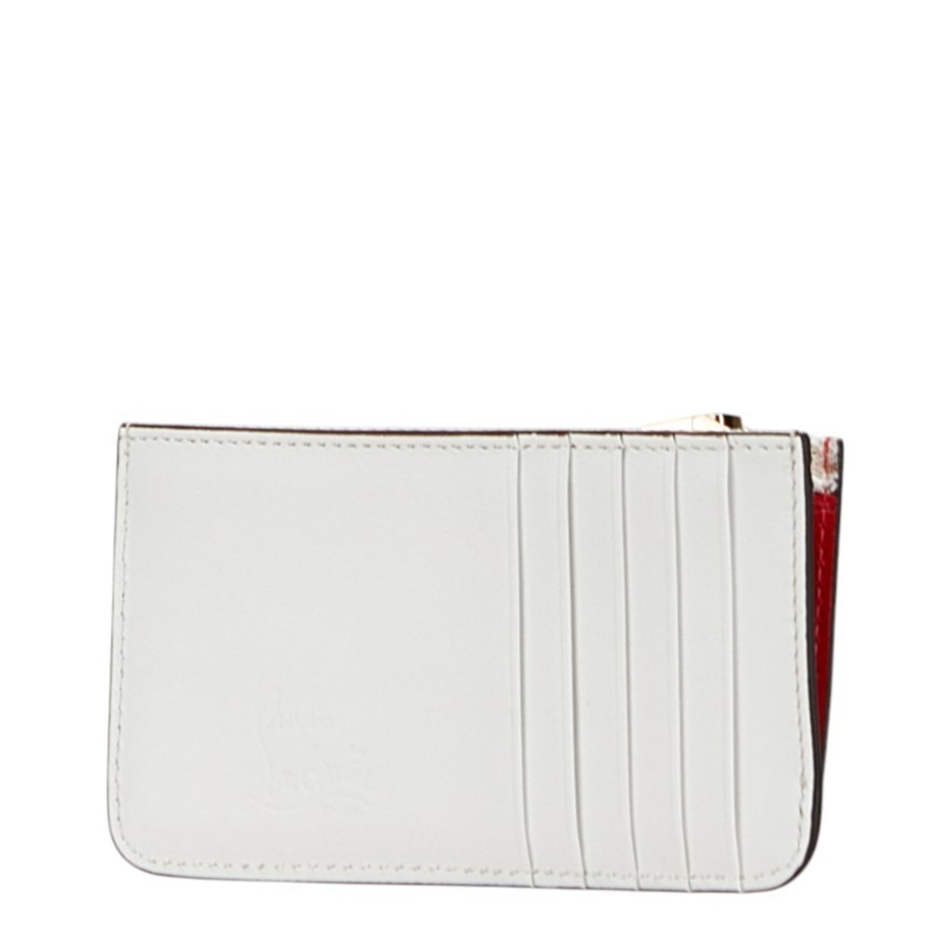 Christian Louboutin Perforated Coin Purse, Business Card Case, White Leather, Women\'s