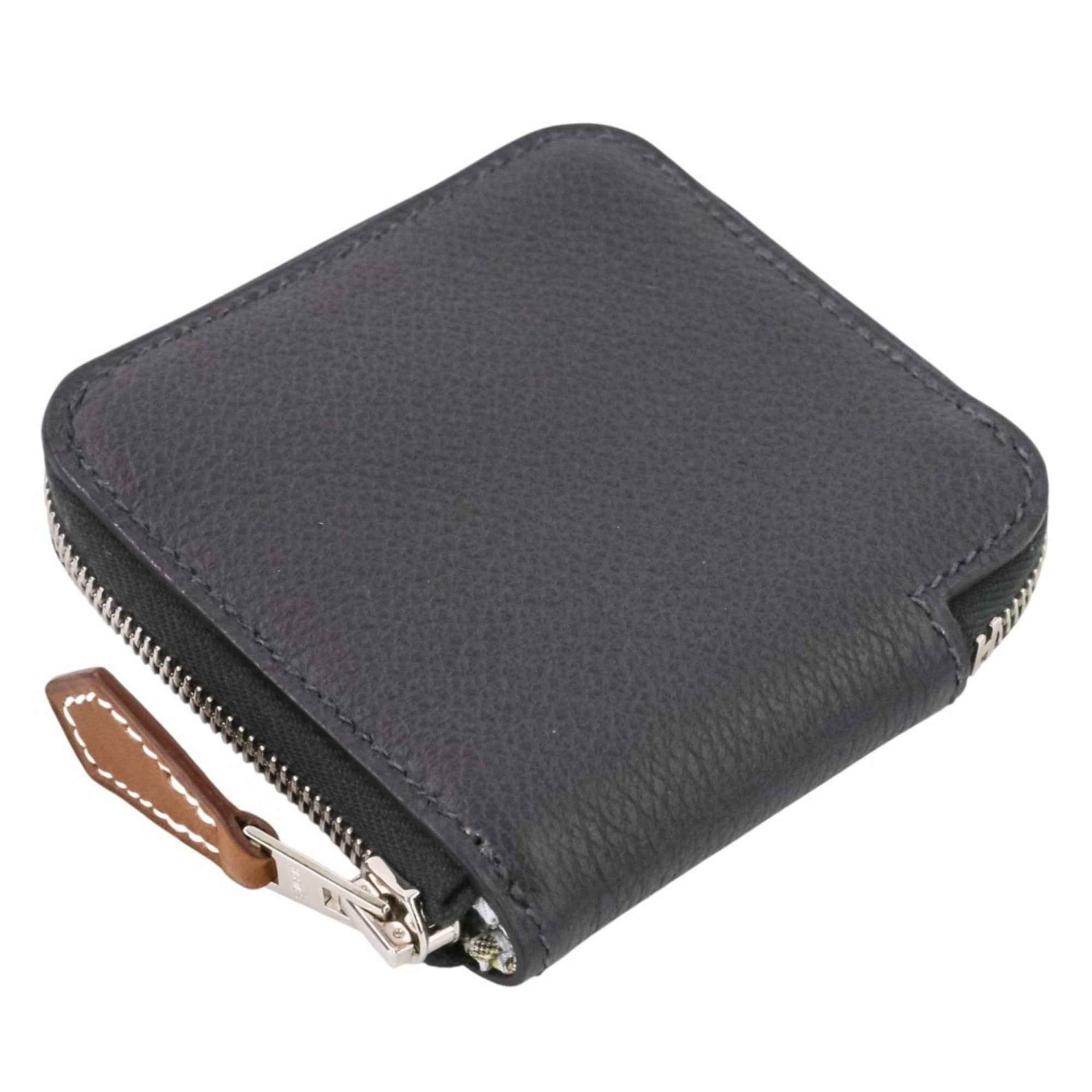 HERMES Azap Mini Silk-in Epsom Wallet/Coin Case, W Stamp, 2024, Black, Women\'s