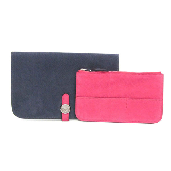 Hermes Dogon GM Men,Women Leather Long Wallet (bi-fold) Navy,Pink