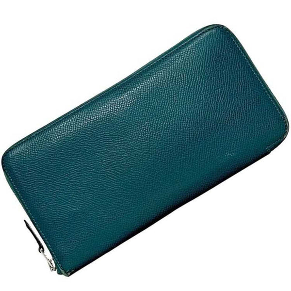 Hermes Hermès Azap Silkin Round Long Wallet (ec-24433) in Green Leather, Togo Silk, and D Stamp. Available Grained Leather for Men Women.