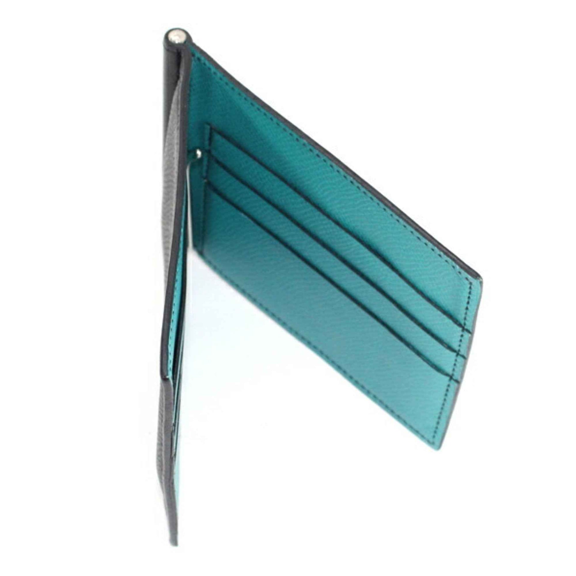 Hermes Hermès Poker GM Bifold Wallet with Money Clip, Black, Blue Paon, Epson Leather, Men\'s, TK2382