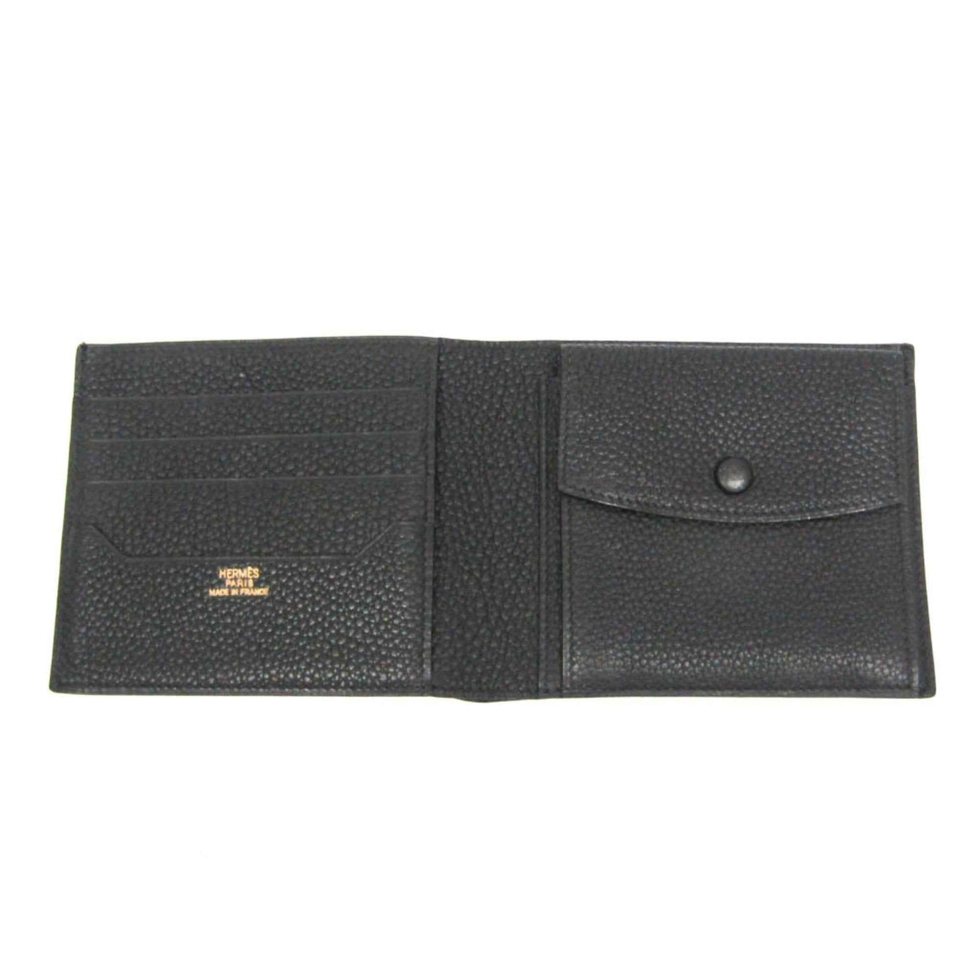 Hermes MC2 Thales Men,Women Togo Leather Wallet (bi-fold) Black