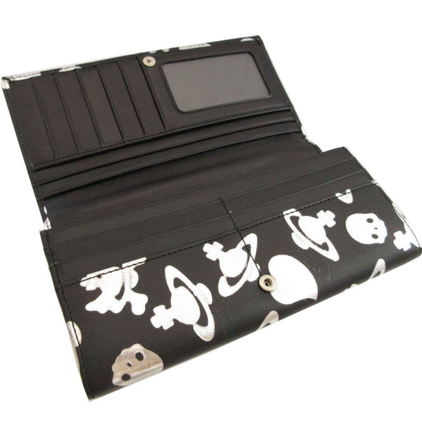 Like new Vivienne Westwood orb pattern heart leather bifold long wallet in black and silver, 1660.