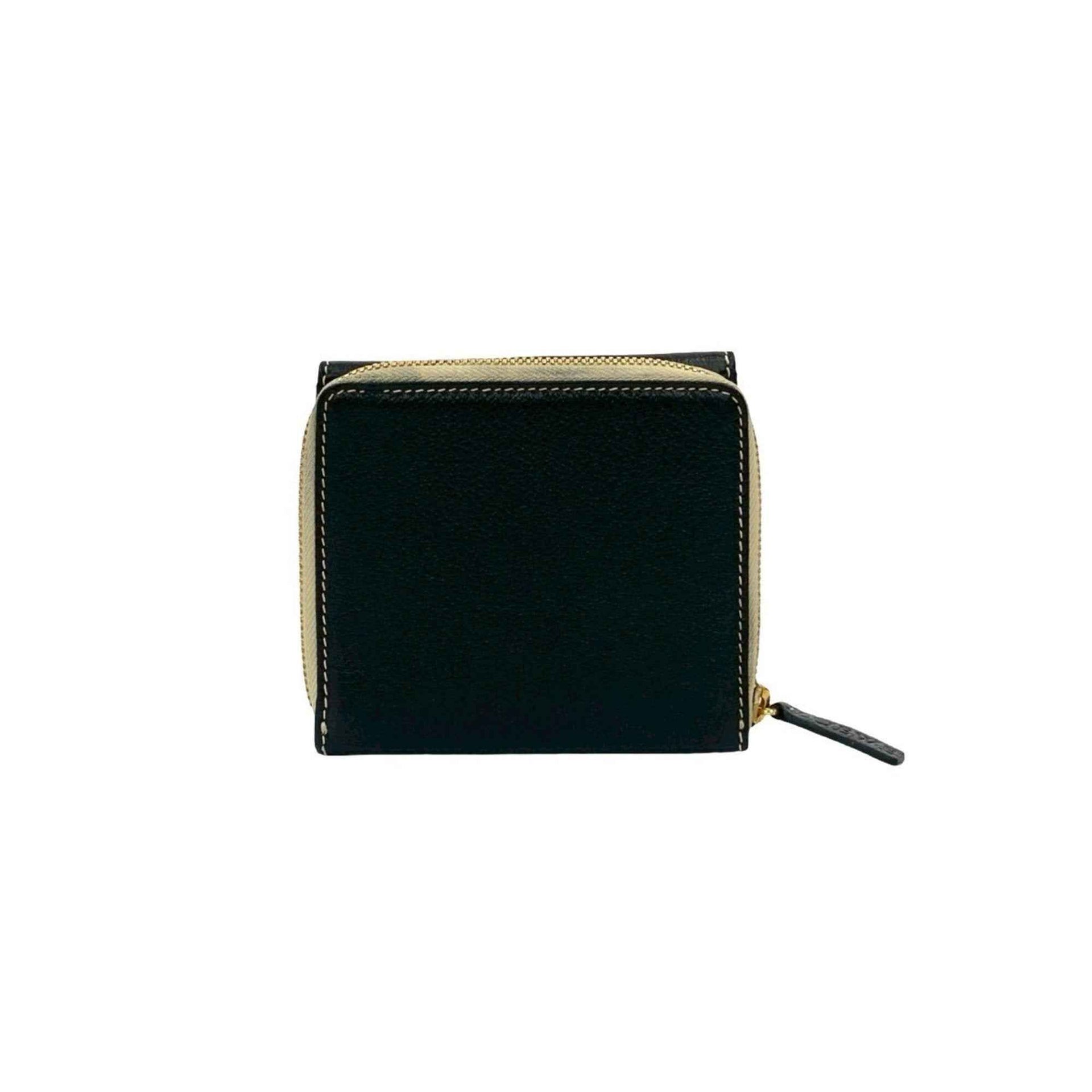 LOEWE Logo Embossed Leather Round Zip Bifold Wallet Black 416-8