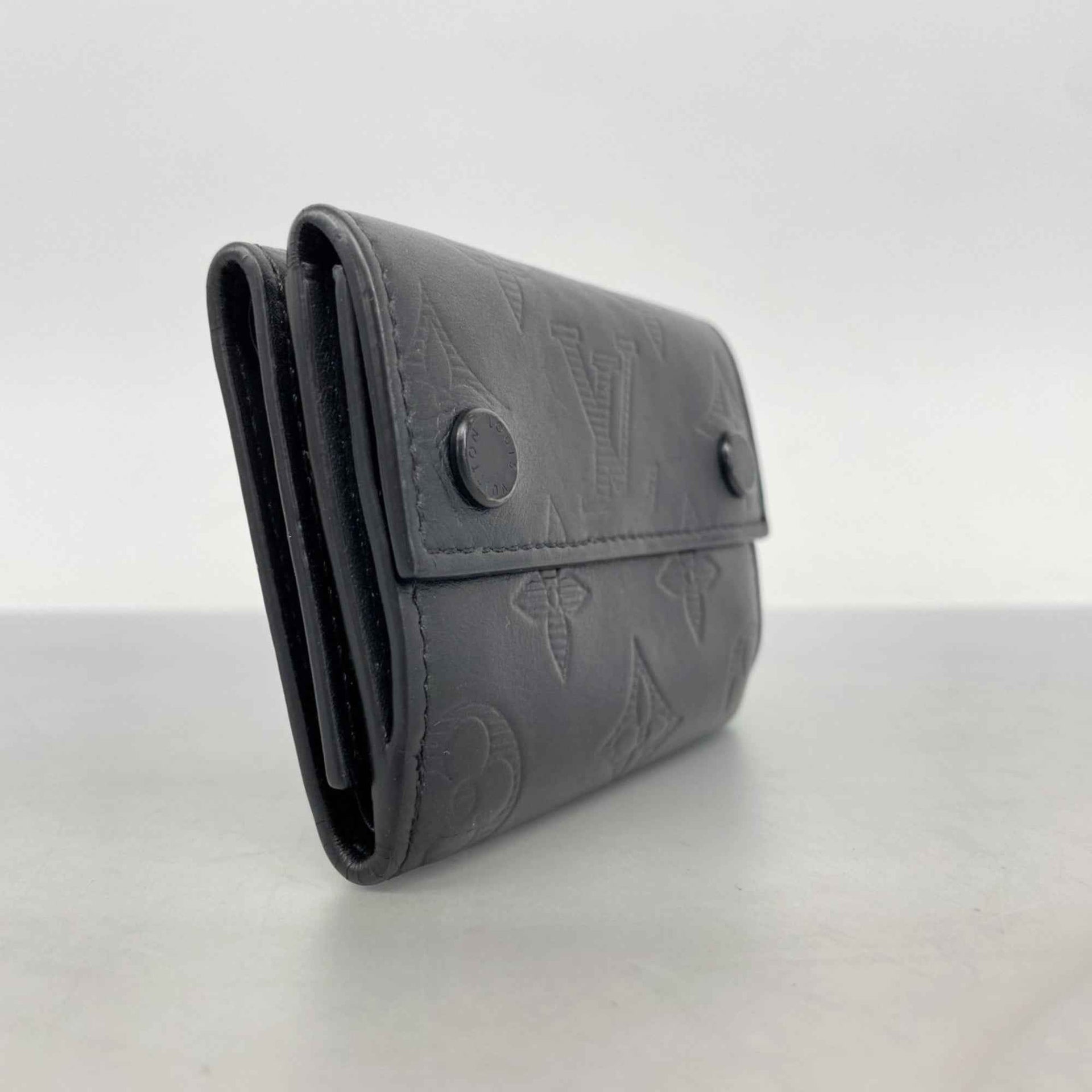 Louis Vuitton Monogram Shadow Discovery Compact Wallet M67631 Noir Men\'s Tri-fold