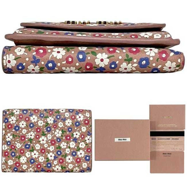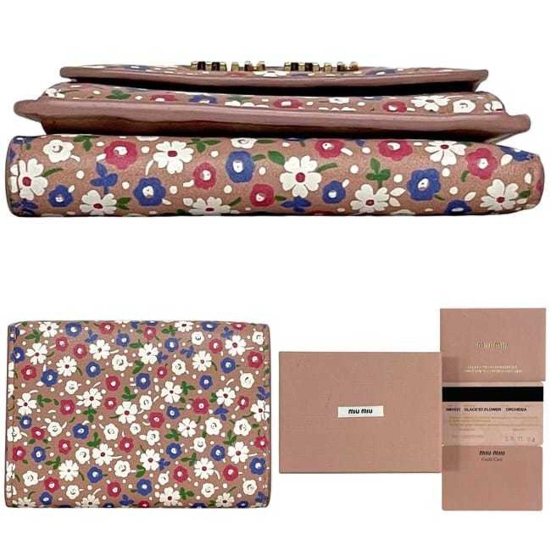 Miu Miu Miu Tri-fold Wallet ec-24412 Pink 5MH021 Leather 262 Flower Compact Mini Women\'s
