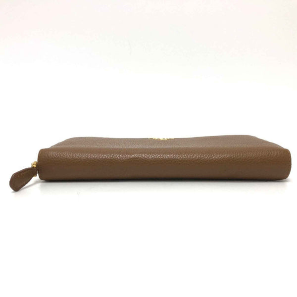 PRADA 1M0506 Logo Round Zip Long Wallet Leather Women\'s Brown