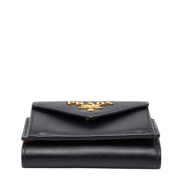 Prada Logo Tri-fold Wallet 1MH021 Black Sapphire Leather Women\'s PRADA