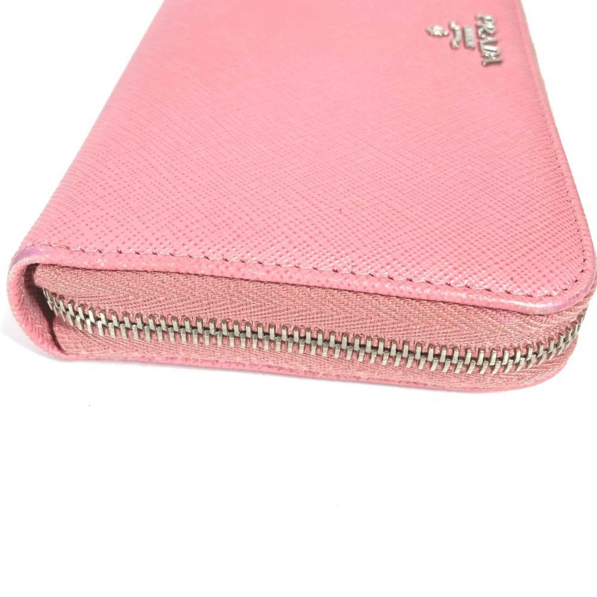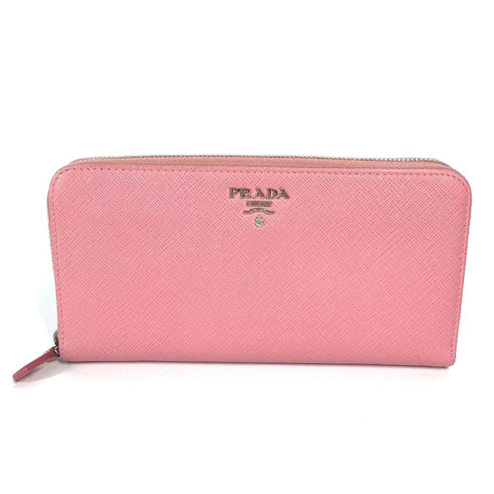 PRADA Prada logo round zip long wallet in Saffiano leather, women\'s, pink