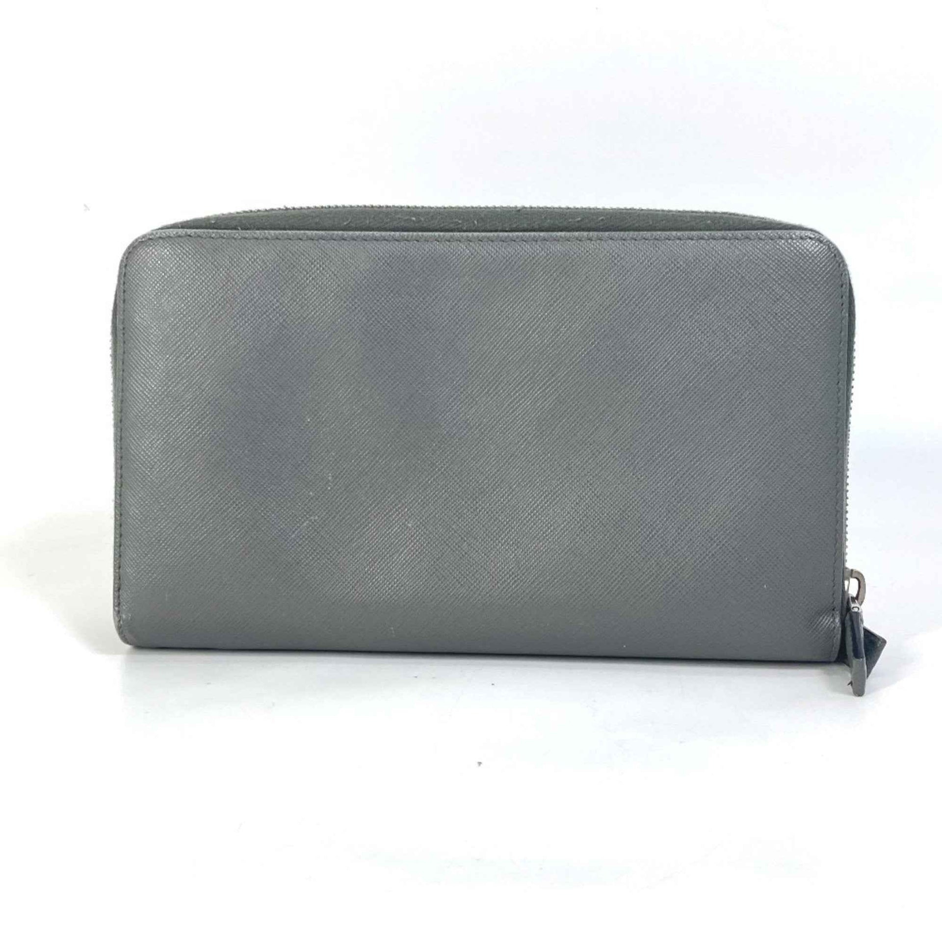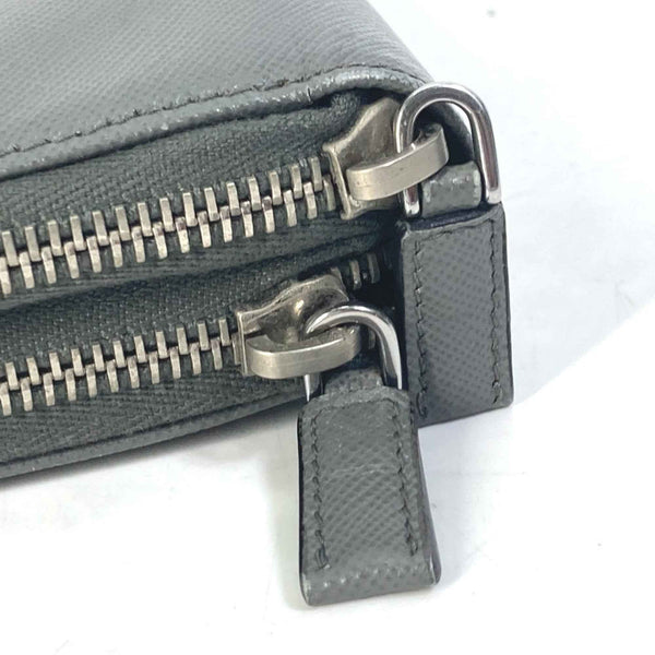 PRADA Prada Organizer Travel Case, Double-Zip Long Wallet, Saffiano Leather, Men\'s, Gray