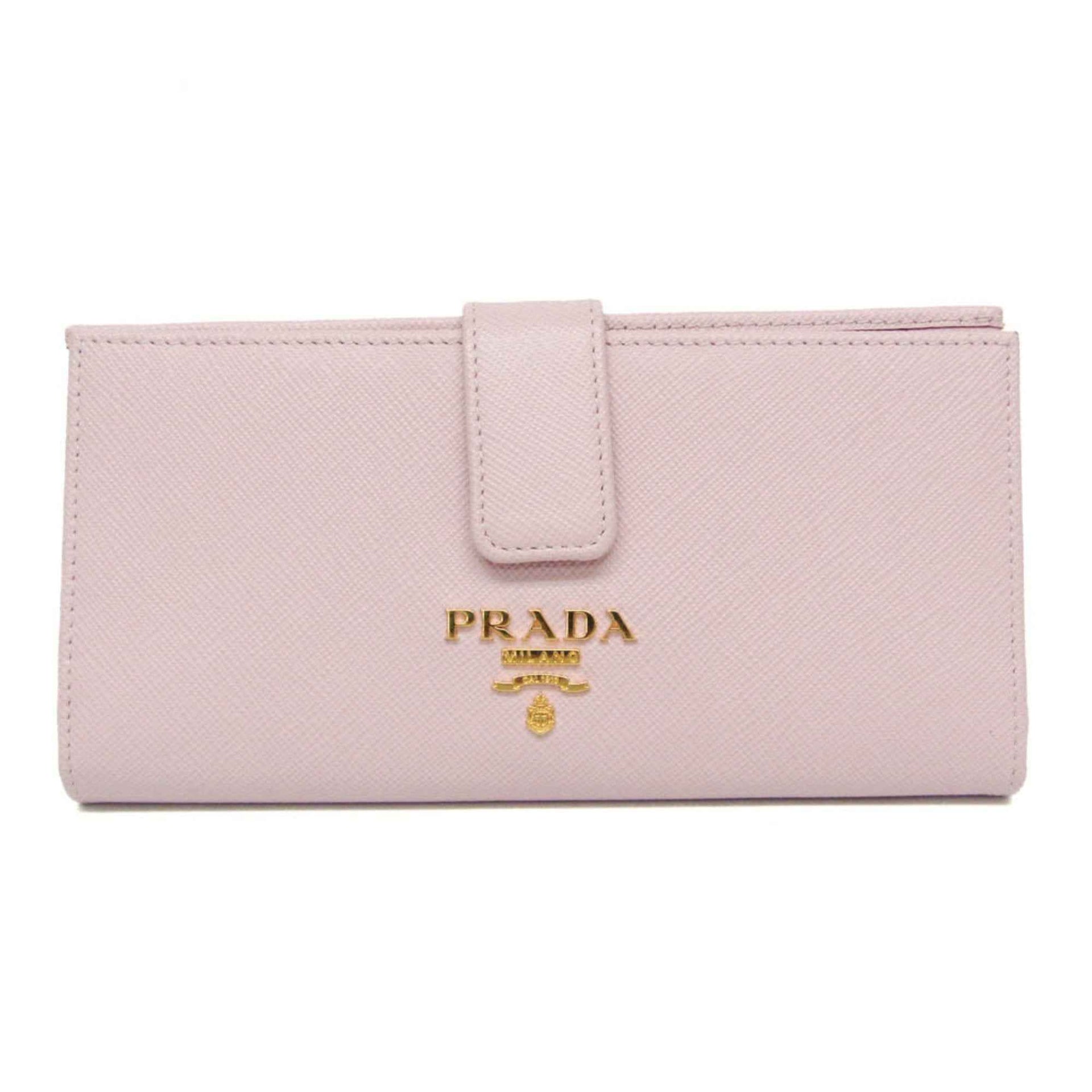 Prada Saffiano Multicolor 1MV025 Women\'s Leather Long Wallet (bi-fold) Pink
