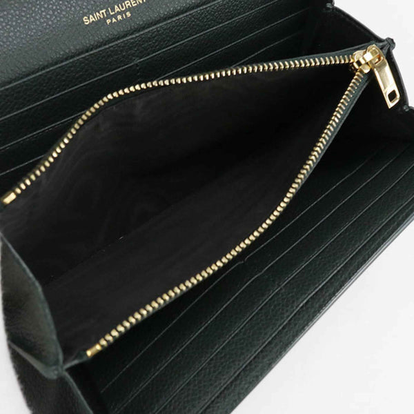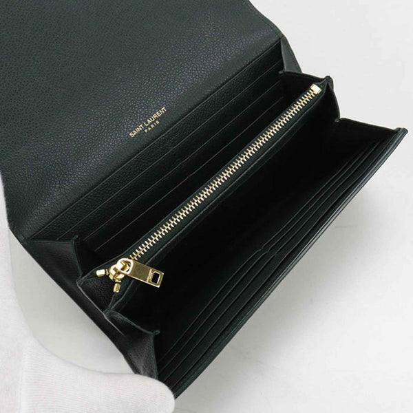 SAINT LAURENT Women\'s Large Flap Wallet, Green, 414567, Bifold
