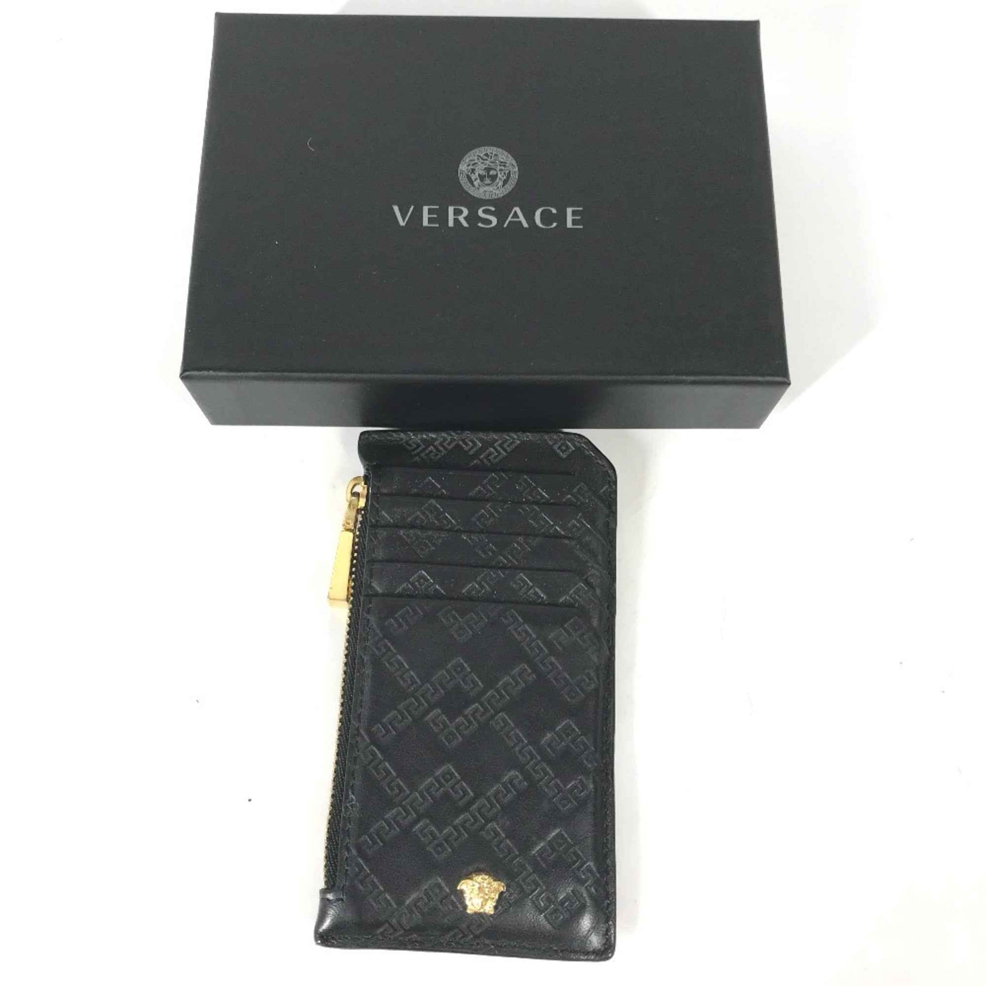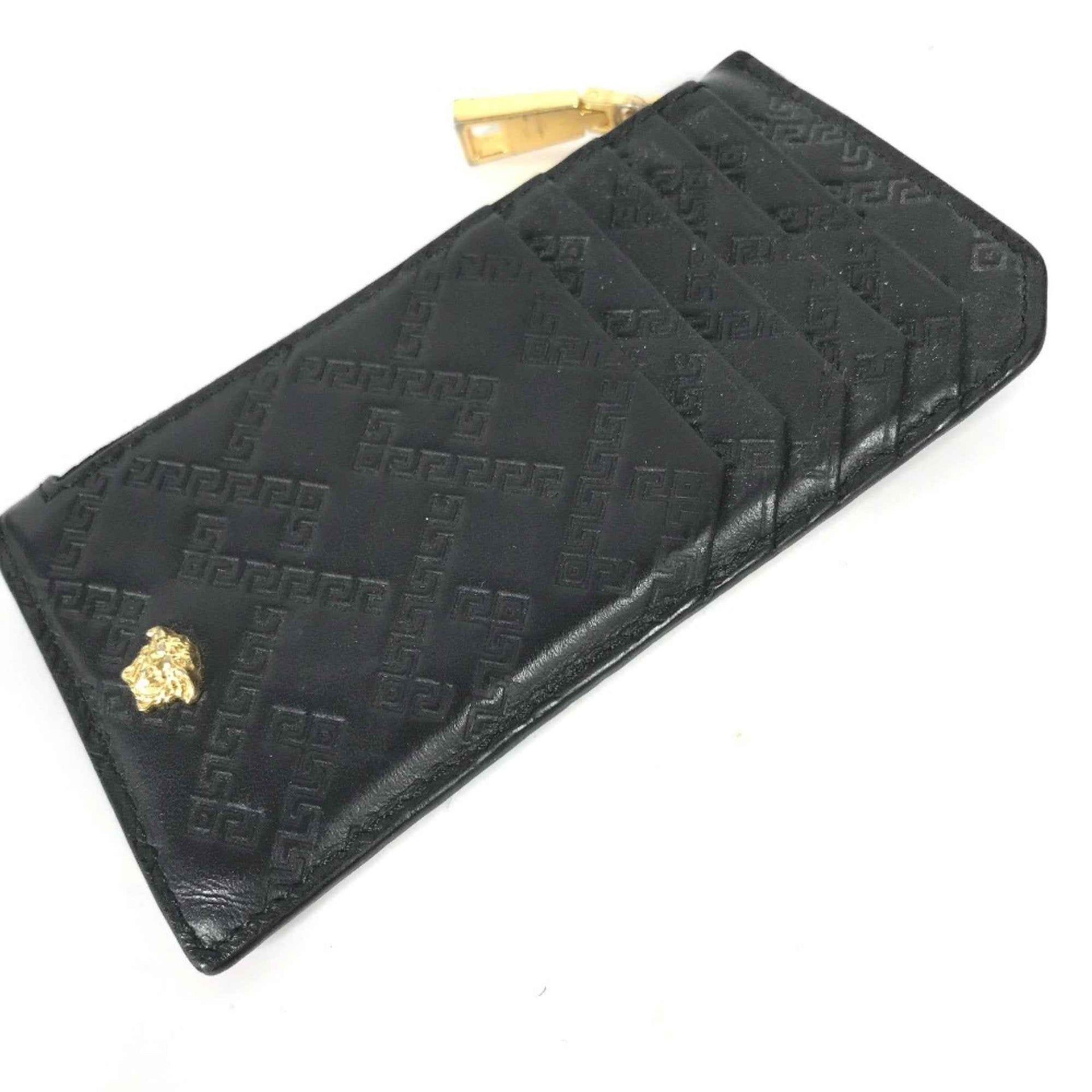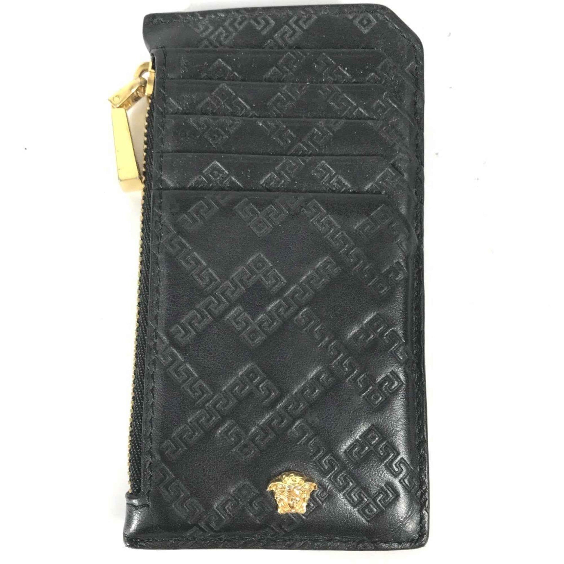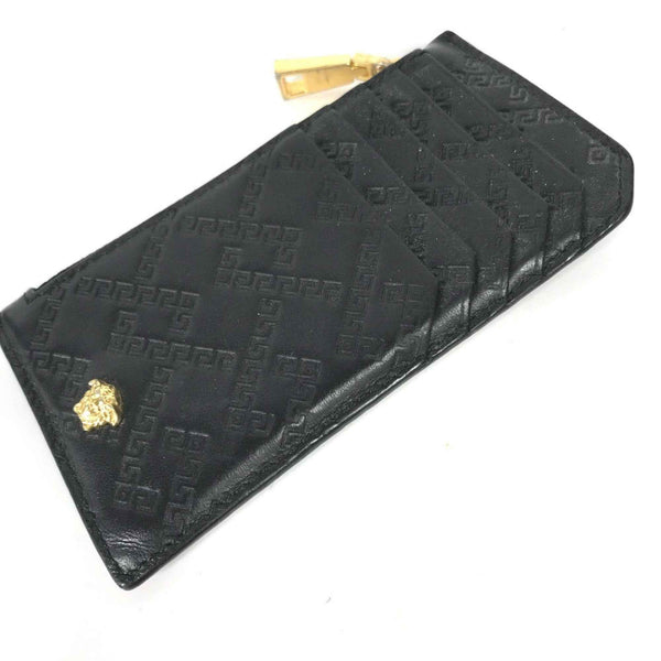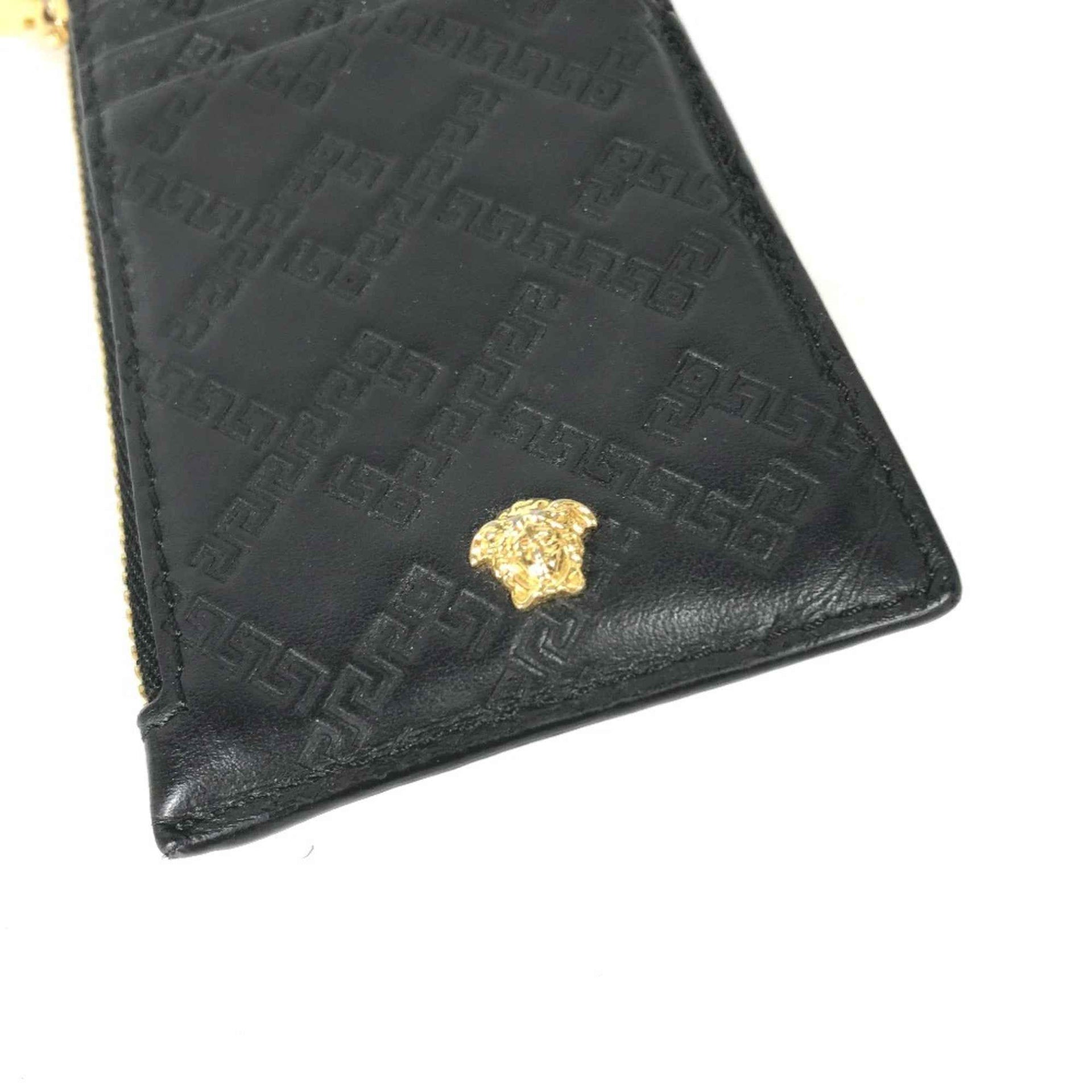 VERSACE Medusa Fragment Case Leather Coin Purse for Men, Black