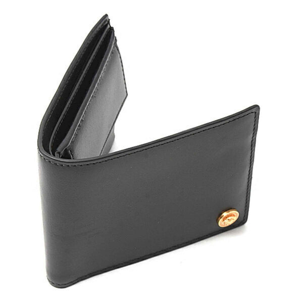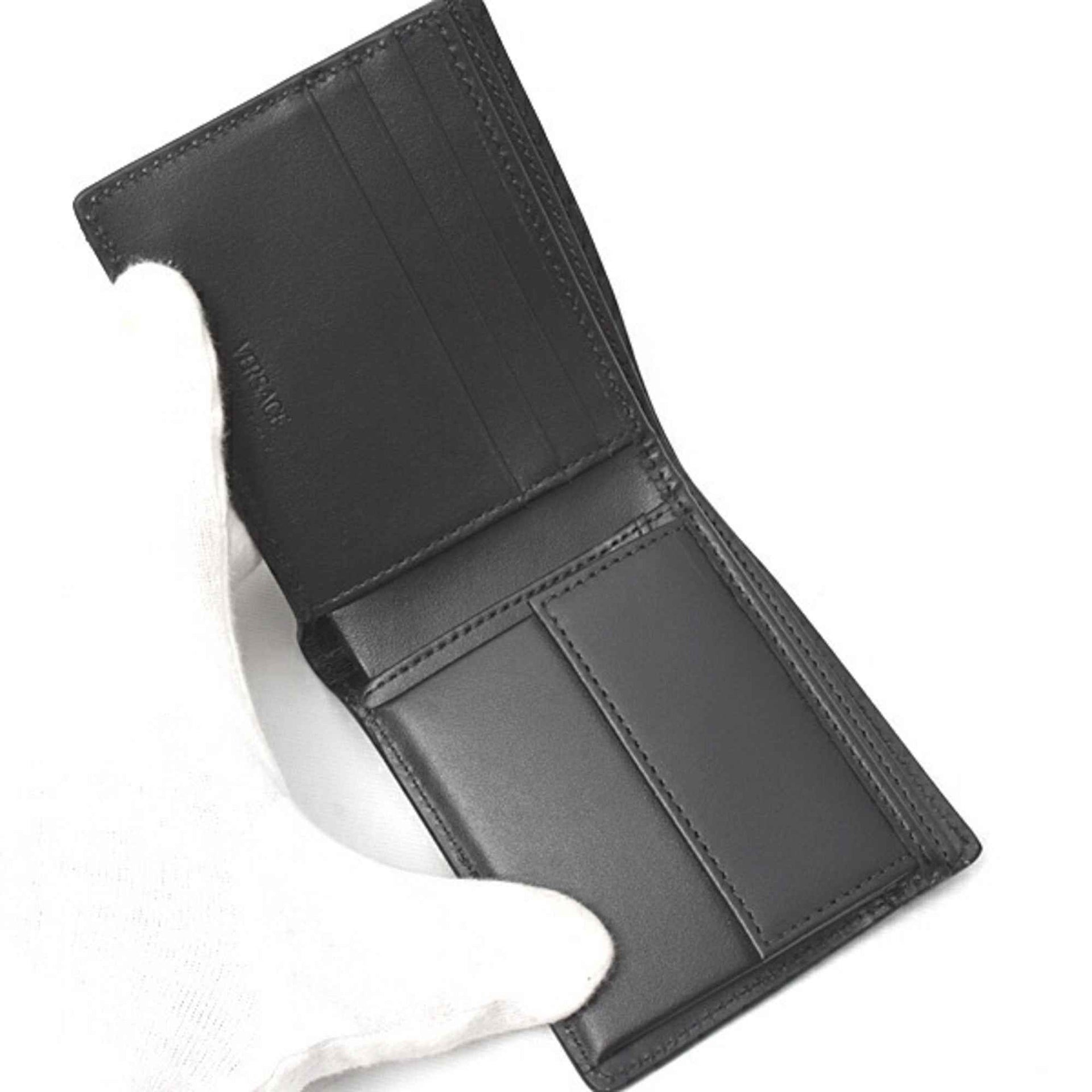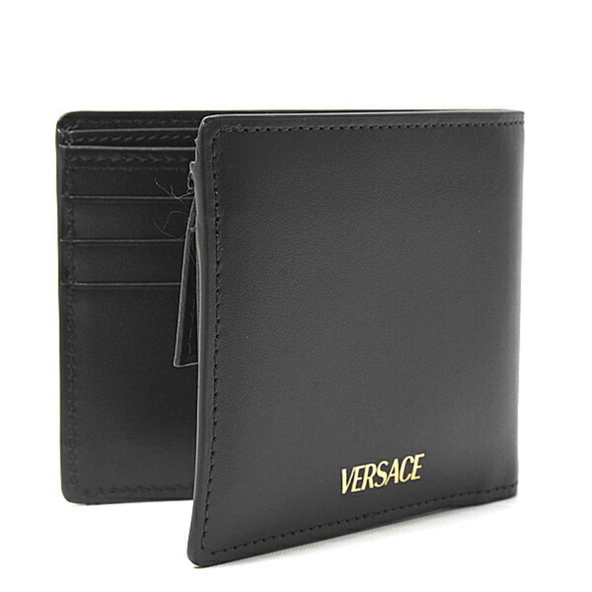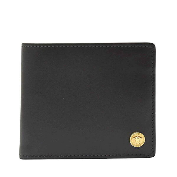 Versace wallet for men and women, compact bifold wallet, black leather.