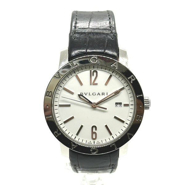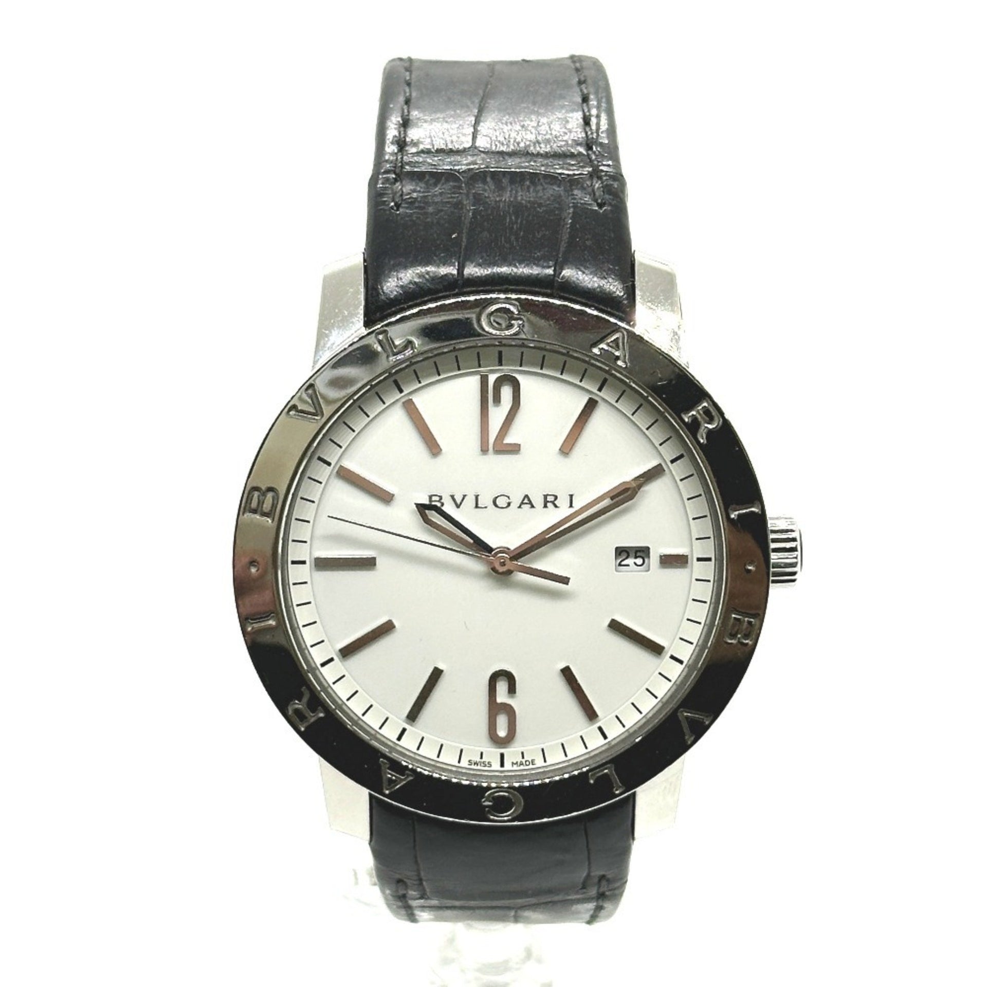 BVLGARI Bvlgari BB41WSLD Automatic Date Watch with Stainless Steel/Leather Strap, Men\'s, Silver