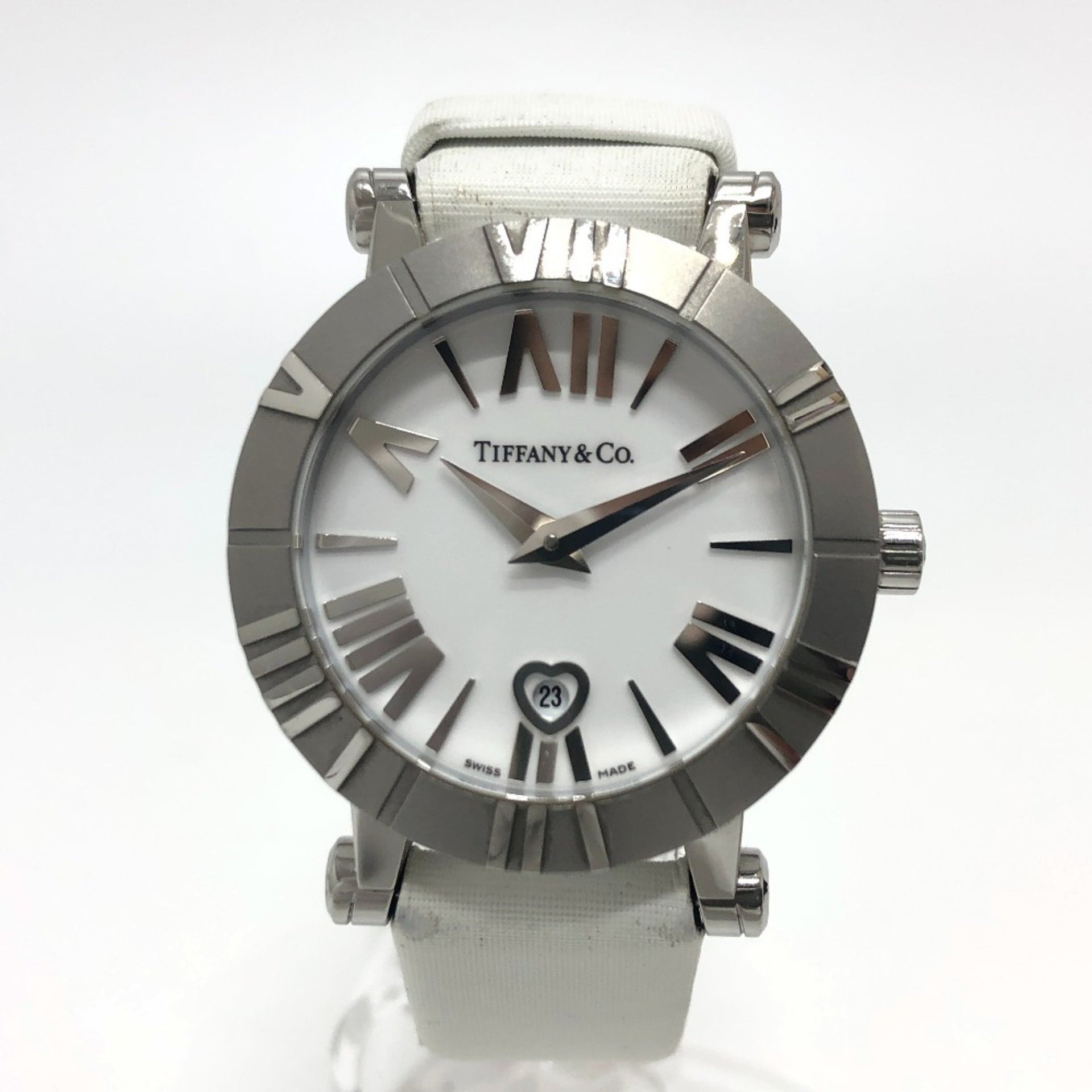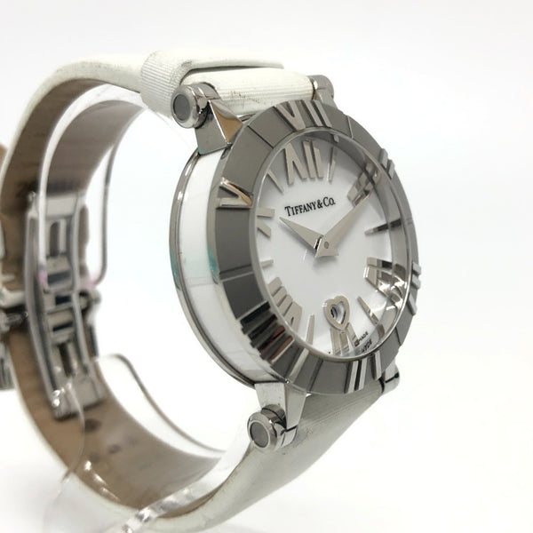 TIFFANY & Co. Z1300.11.11A20A41A White Ceramic Atlas Quartz Date Watch with Stainless Steel and Leather Strap, Silver