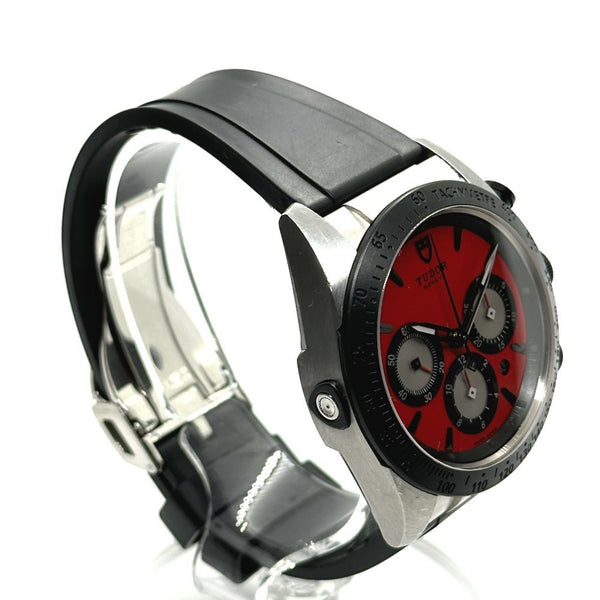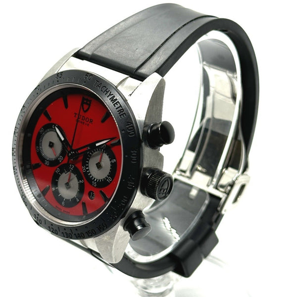TUDOR 42010 Fastrider Chronograph Automatic Watch Stainless Steel Men\'s Red Dial Silver