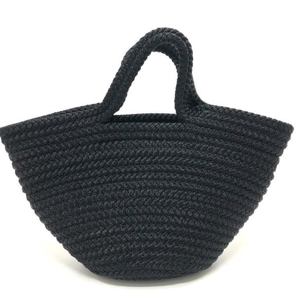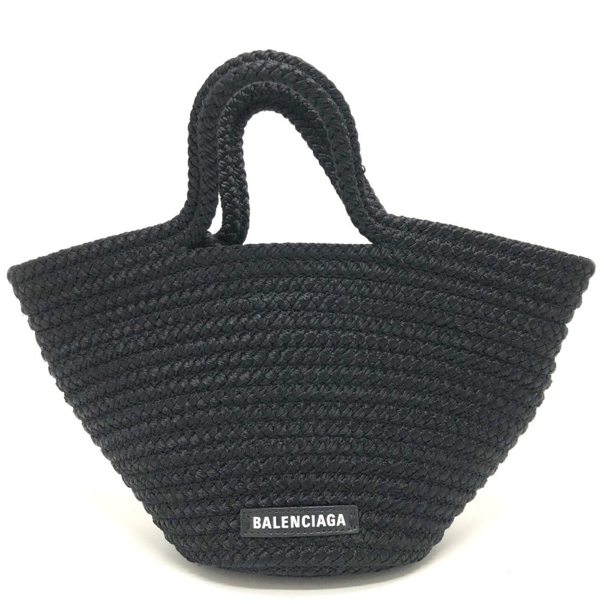 BALENCIAGA 695612 Logo Ibiza Basket Bag Small with Strap Black Cord Tote Summer Handbag Nylon Lambskin Women\'s