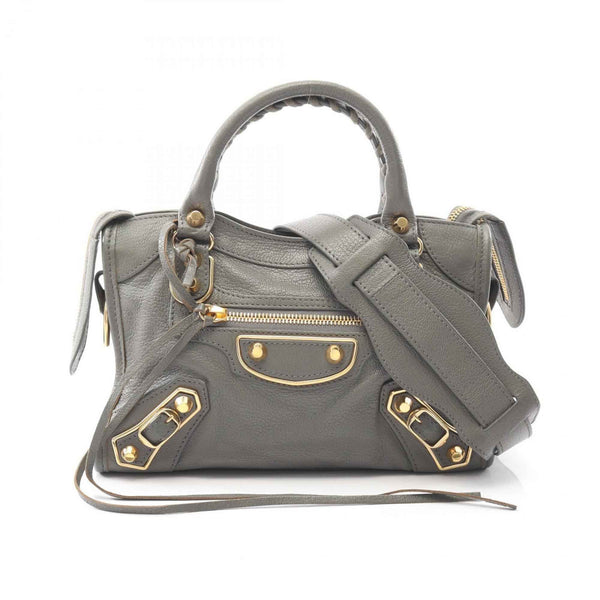 Balenciaga Classic Metallic Edge Mini City Handbag, Leather, Women\'s, Gray, 390160