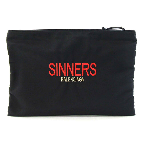 Balenciaga Clutch Bag 459745 Black Nylon Canvas Leather Pouch Embroidered Men\'s Women\'s BALENCIAGA