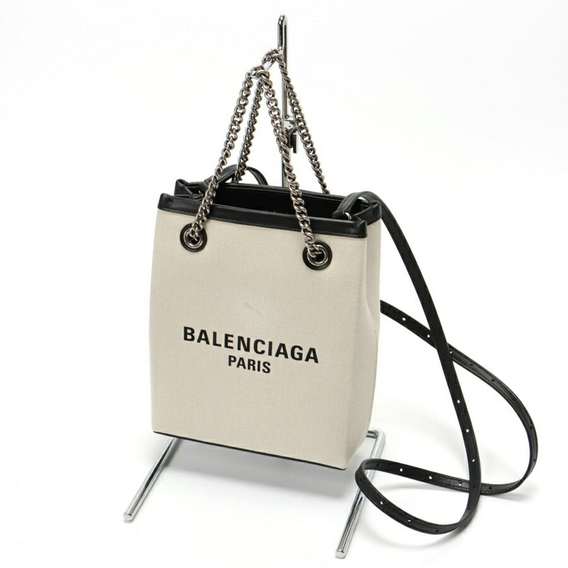 BALENCIAGA Duty Free Phone Holder Shoulder Bag 761303 Canvas Leather Natural Black S-156853