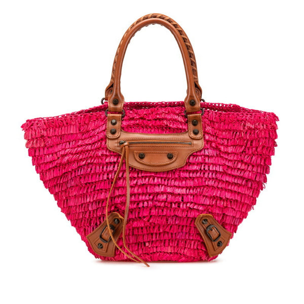 Balenciaga Handbag Basket Bag 286990 Pink Brown Raffia Leather Women\'s BALENCIAGA