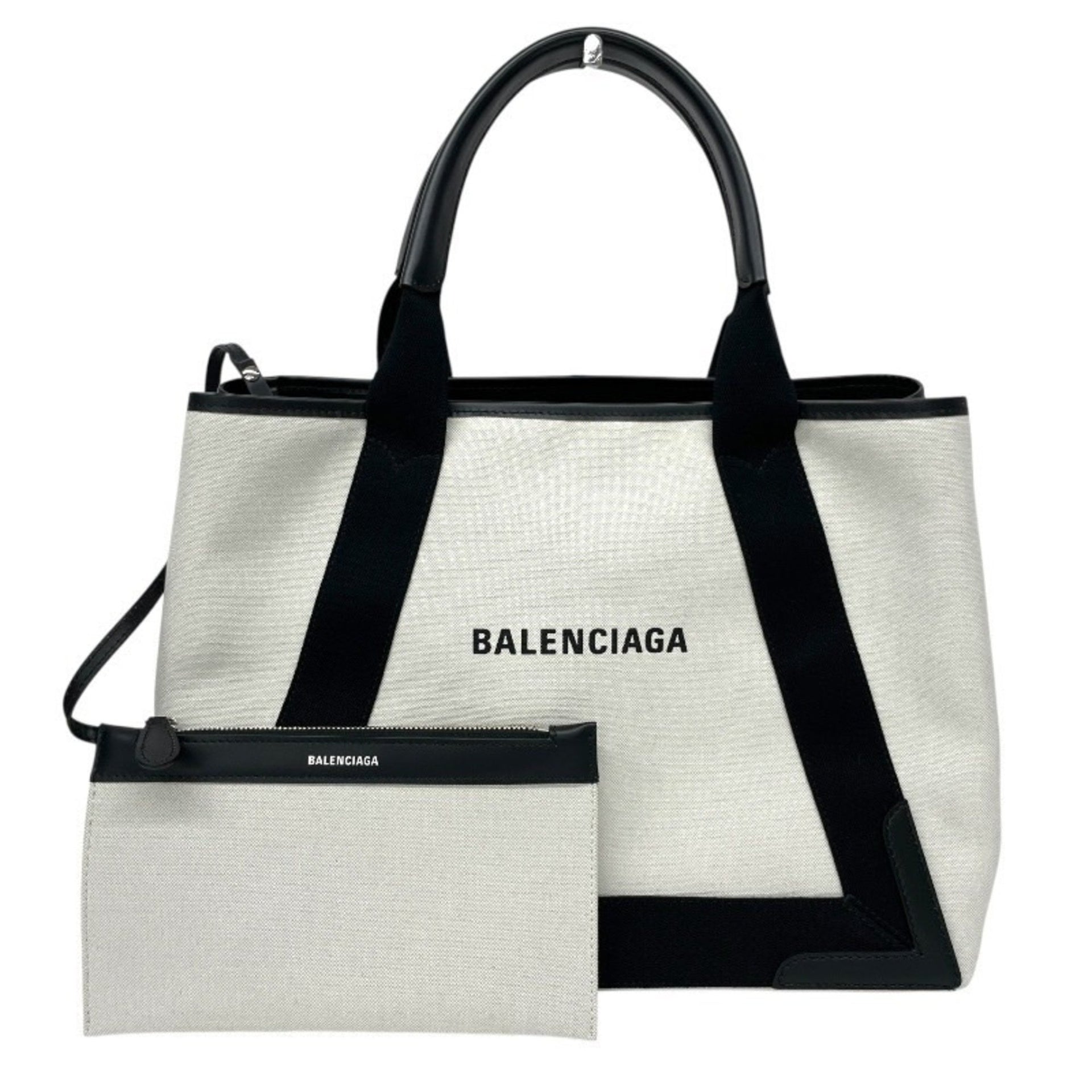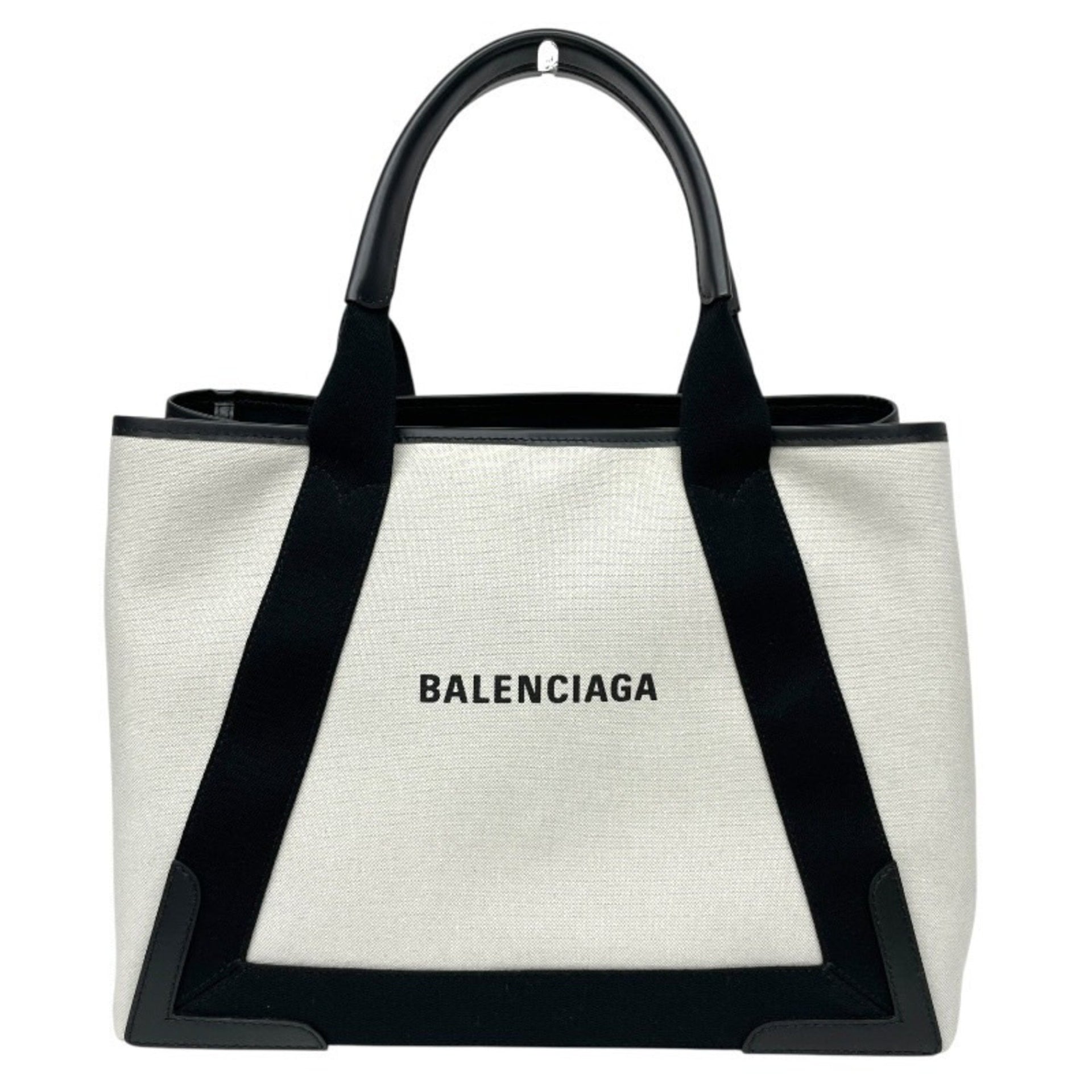 BALENCIAGA Navy Cabas M 581292 Handbag, Leather, Women\'s, Pouch, Tote, Canvas