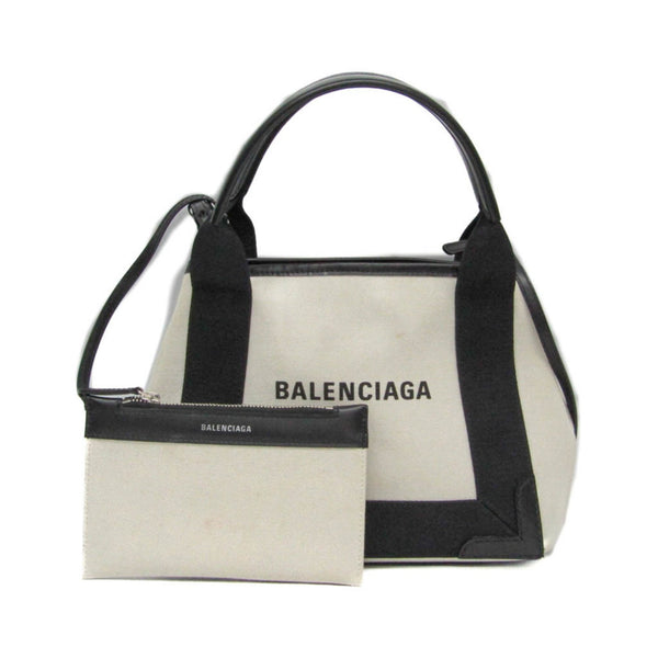 Balenciaga Navy Cabas XS 390346 Women\'s Canvas,Leather Handbag,Shoulder Bag Black,Cream