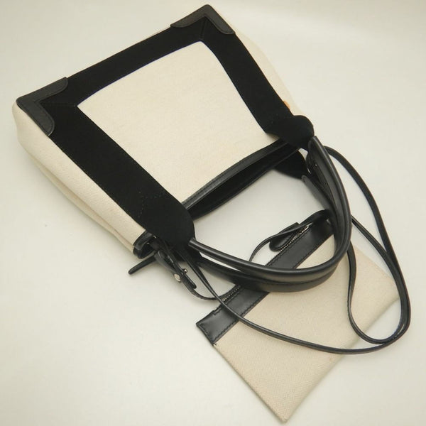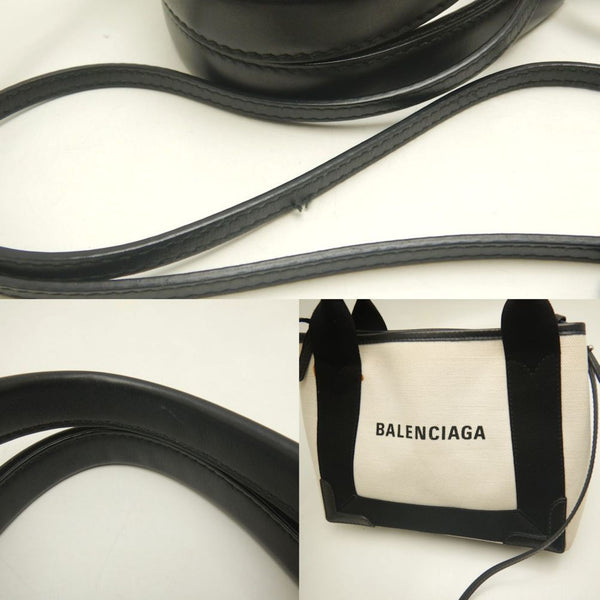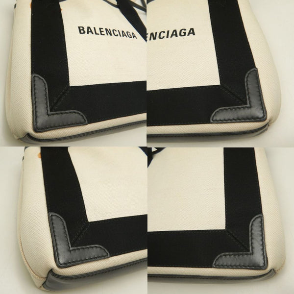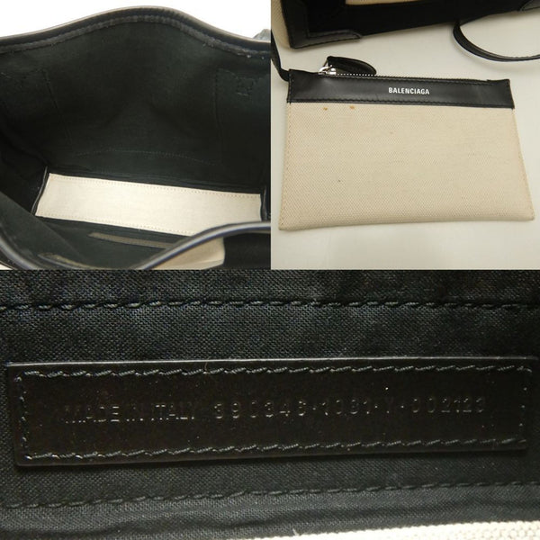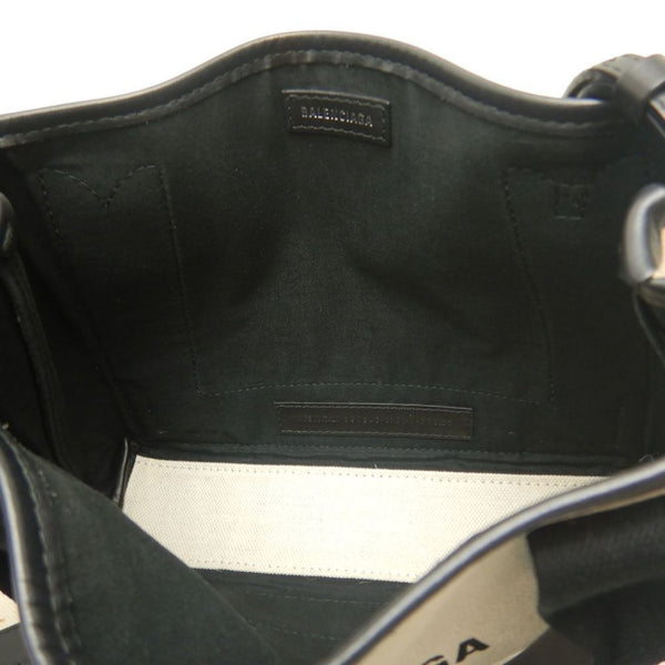 BALENCIAGA Navy Cabas XS Tote Bag (390346), Canvas and Leather, Ivory Black, Women\'s, 253199